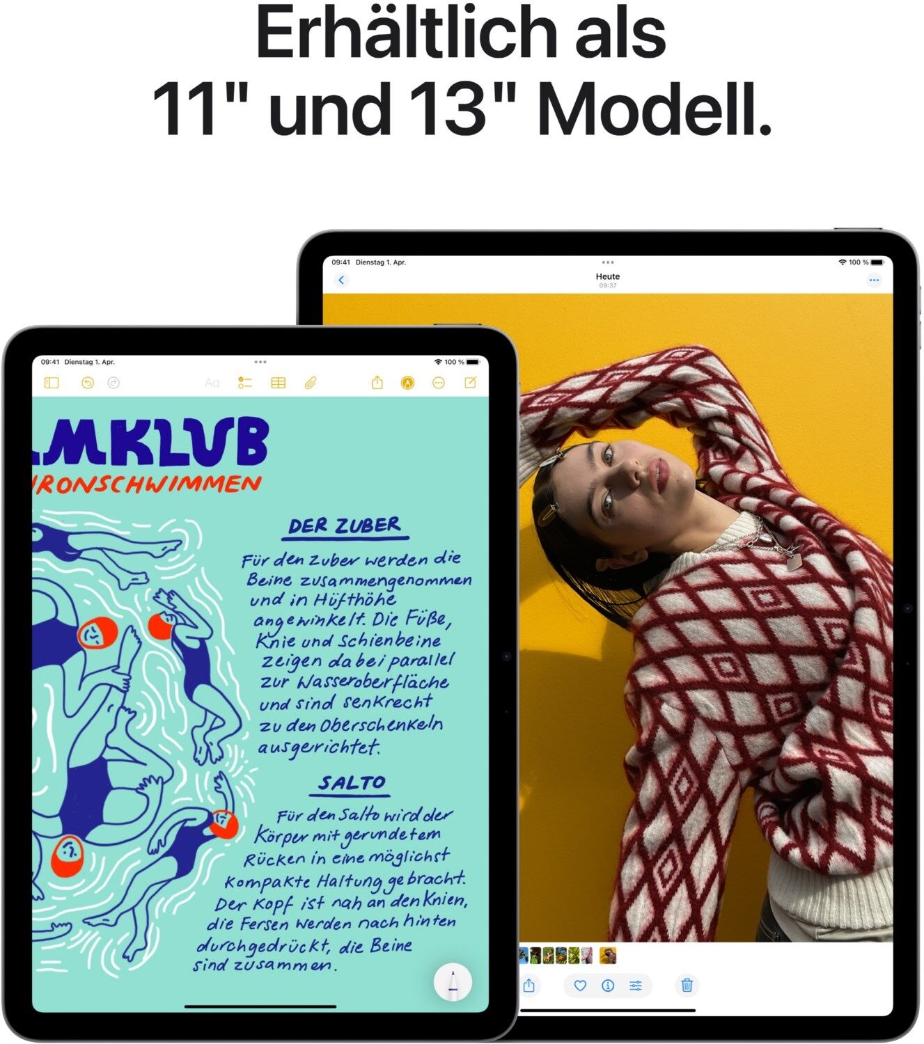¹ Das Display hat gerundete Ecken. Als Rechteck gemessen beträgt die Diagonale 10,86" (27,59 cm) beim 11" iPad Air. Der tatsächlich sichtbare Displaybereich ist kleiner.