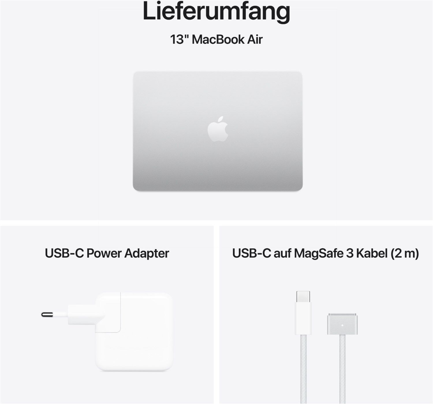 ³ Das Display des 13" MacBook Air hat oben gerundete Ecken. Als Standard-Rechteck gemessen hat das Display eine Diagonale von 13,6" (34,46 cm). Der tatsächlich sichtbare Displaybereich ist kleiner.