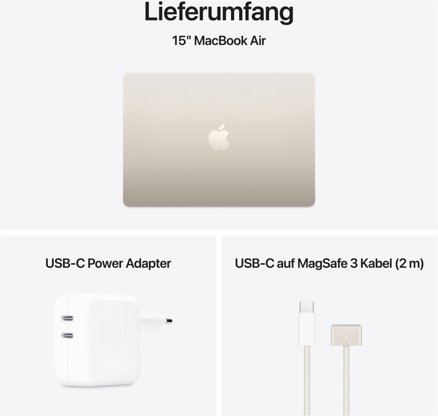 ³ Das Display des 15" MacBook Air hat oben gerundete Ecken. Als Standard-Rechteck gemessen hat das Display eine Diagonale von 15,3" (38,91 cm). Der tatsächlich sichtbare Displaybereich ist kleiner.