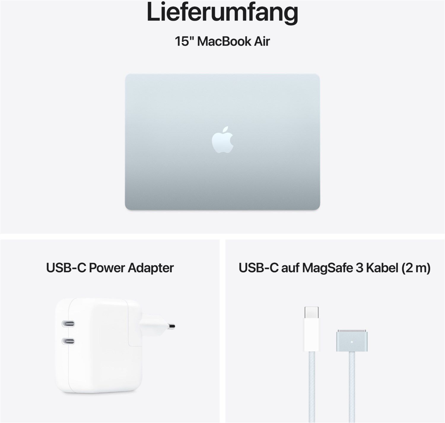 ³ Das Display des 15" MacBook Air hat oben gerundete Ecken. Als Standard-Rechteck gemessen hat das Display eine Diagonale von 15,3" (38,91 cm). Der tatsächlich sichtbare Displaybereich ist kleiner.