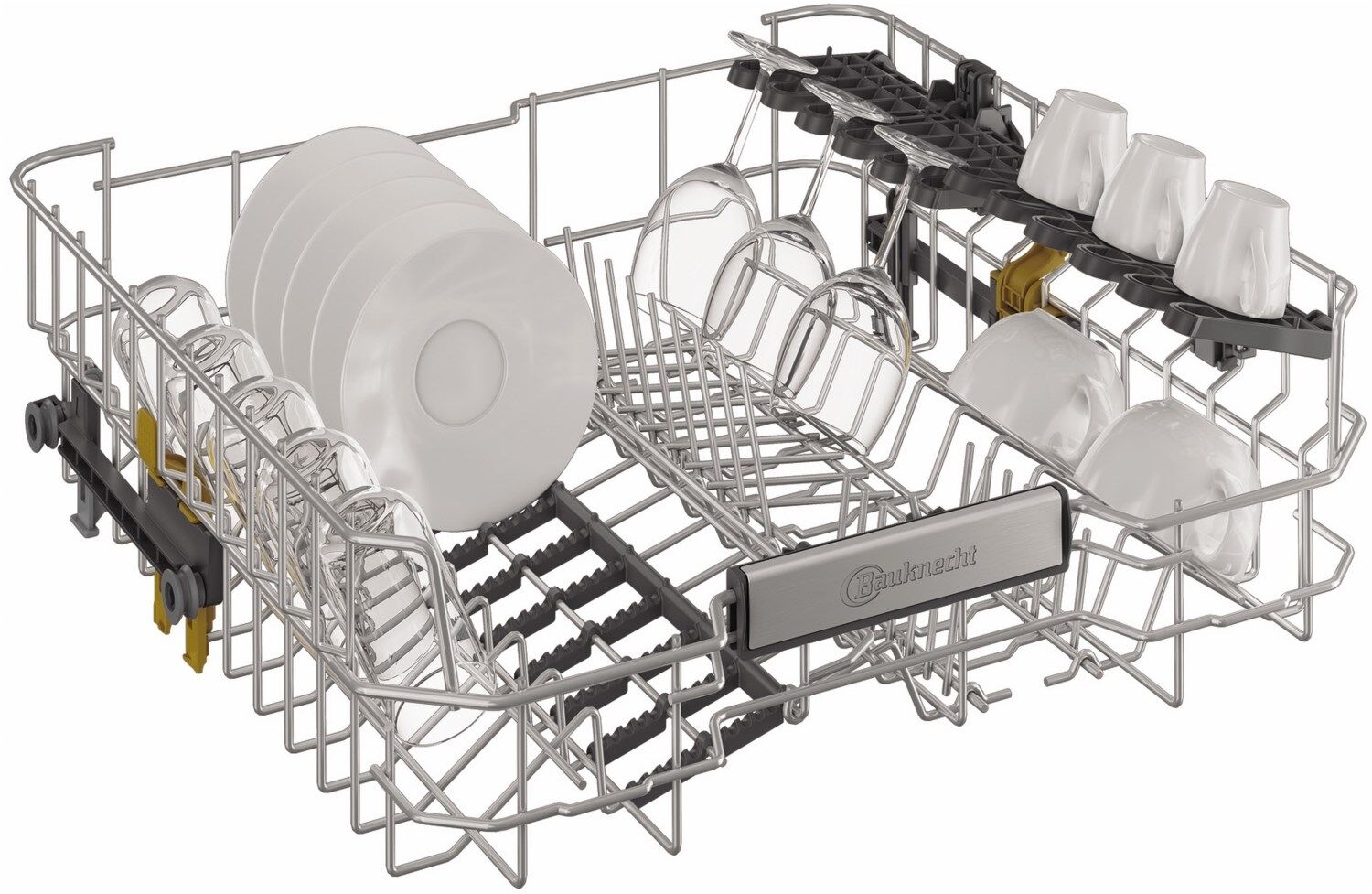 - 4 klappbare Tassenablagen im Oberkorb