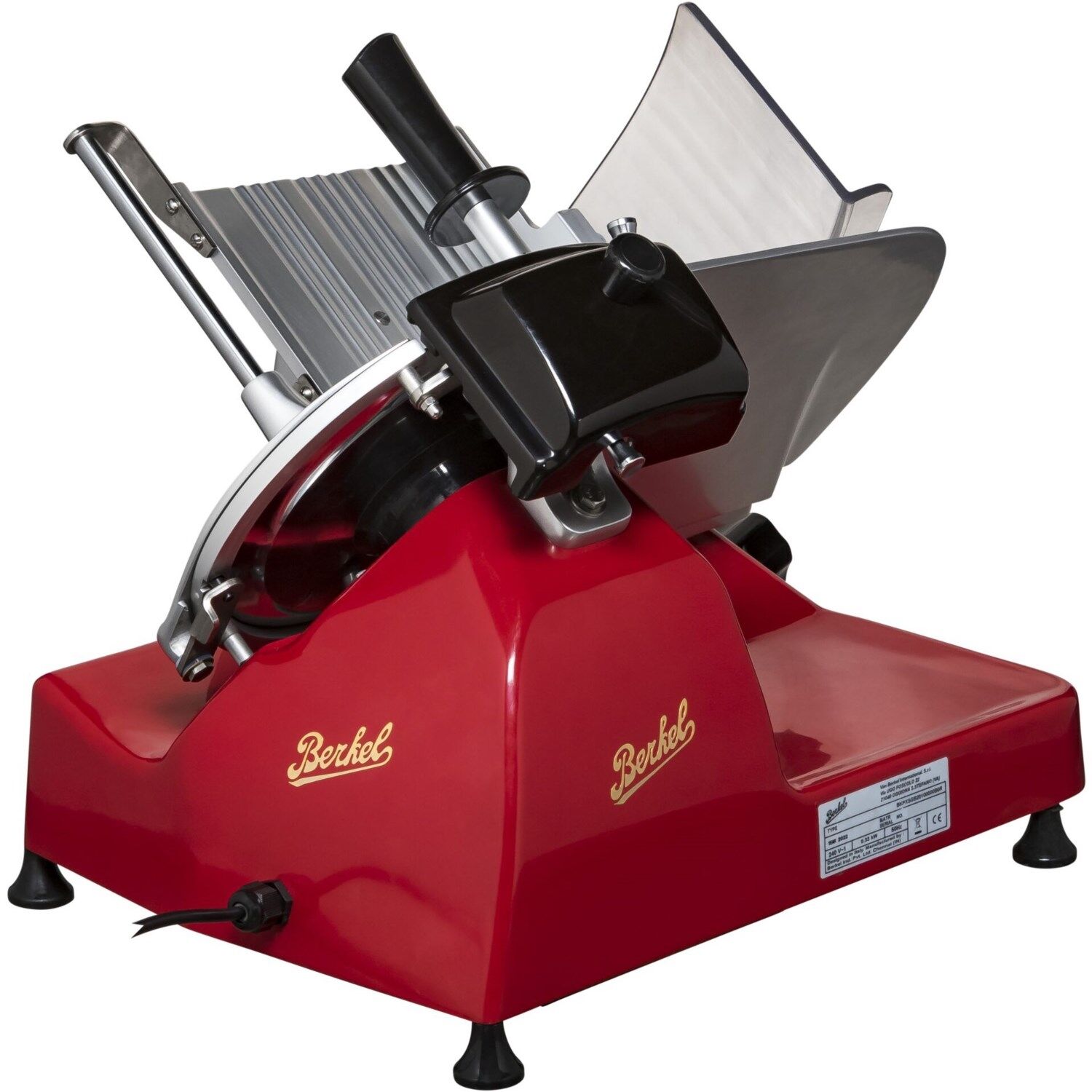 Mit der Berkel Pro Line XS25 vereinigen sich italienisches Design mit ausdauernder Performance. Die XS25 "rosso" macht mit ihrem kräftigen Rot in Ihrer Küche nicht nur optisch eine Top-Figur, der leistungsstarke Motor sorgt mit 320 Watt für einen kontinuierlichen Vortrieb des Messers auch bei größerem Schnittgut. Die Schnittbreite lässt sich bei der XS25 stufenlos über den Drehknopf bis auf 14 mm einstellen, der leichtgängige Schlitten, der Restehalter und der Handschutz sorgen für Ihre Sicherheit bei der Bedienung. Mit den 4 robusten Standfüßen und dem durchgehenden gusseisernen Gehäuse bleibt die XS25 stabil und sicher an ihrem Platz und verrutscht nicht. Das abnehmbare Schleifgerät hält das Messer scharf und sorgt für eine lange Haltbar- & Nutzbarkeit.