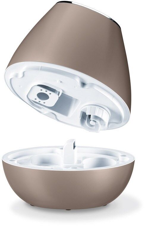 Hochfrequente Schwingungen lösen kleinste Tröpfchen von der Wasseroberfläche. Der Luftstrom des Ventilators bringt die befeuchtete Luft nach außen. Auf Wunsch kann das Gerät mit Aromen angewendet werden.