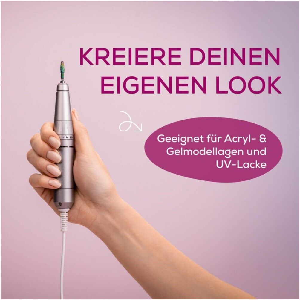 - Das leistungsstarke Gerät mit bis zu 26.000 U/min ermöglicht eine effiziente, schnelle Nagelpflege. Inklusive 9 hochwertigen Aufsätze aus Saphir, Filz und Hartmetall