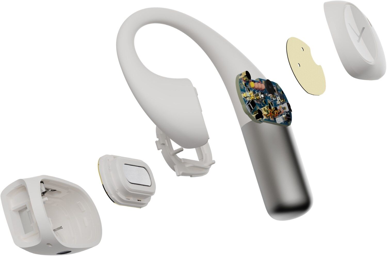 AMIRON 200 ist ein kabelloser Bluetooth®-Sportkopfhörer in offener Bauweise. AMIRON 200 sitzt nicht im Gehörgang, sondern liegt auf dem Ohr auf und leitet den Klang direkt in das Ohr. Dieses Design ermöglicht es, Musik zu hören, Sport zu treiben und gleichzeitig die Umgebung sicher und bewusst wahrnehmen zu können.