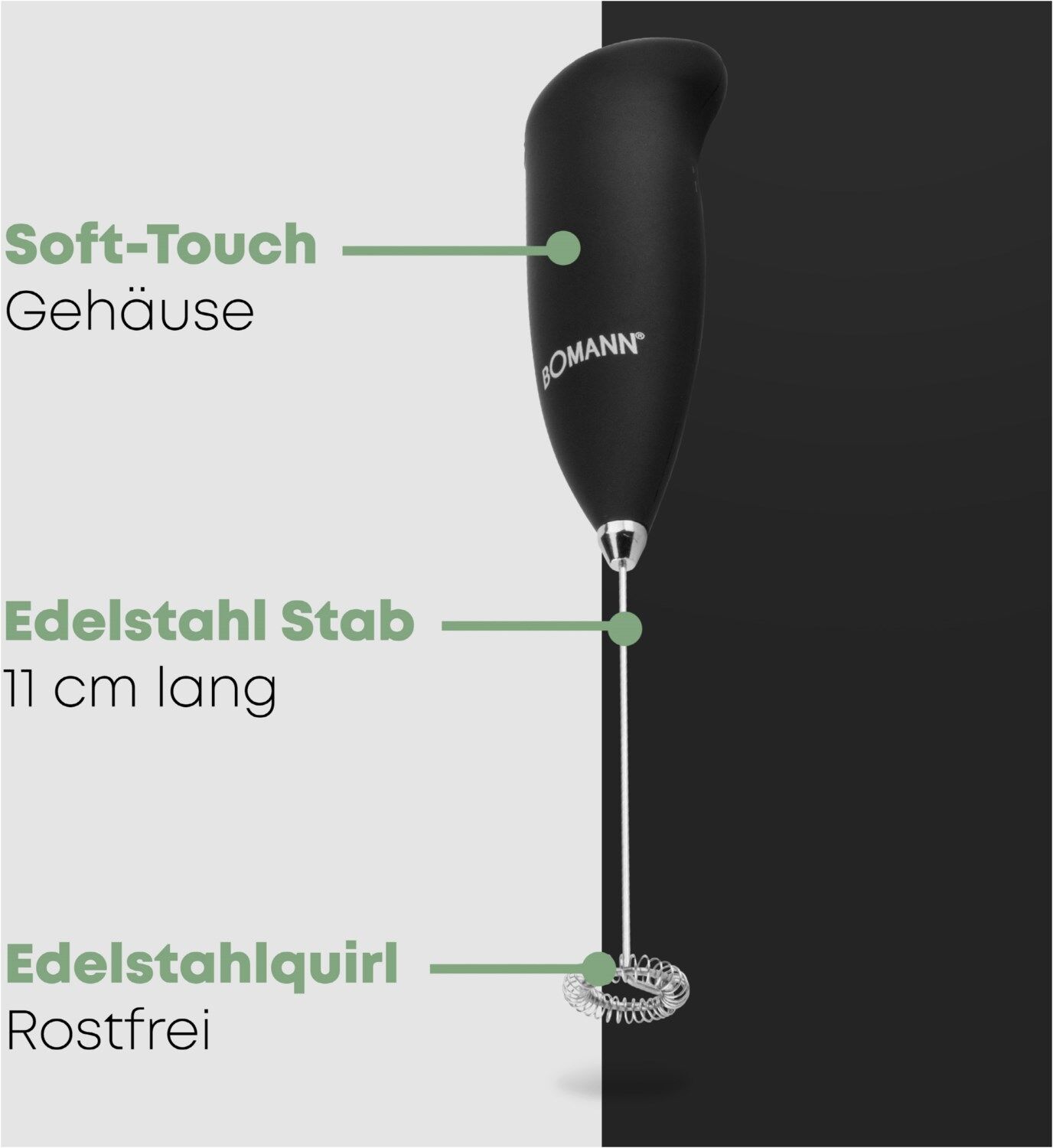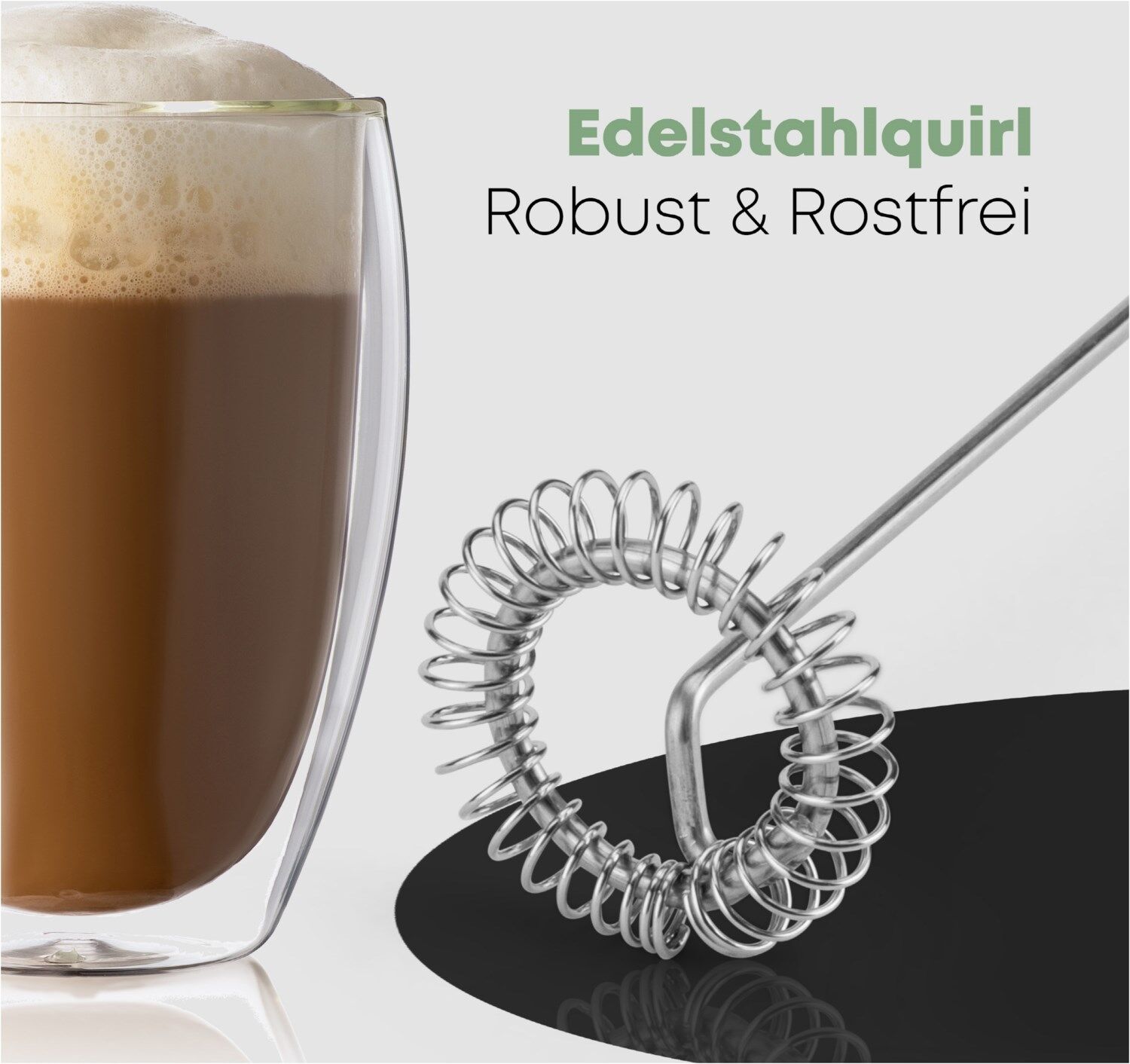 Milchschaum in Sekundenschnelle Soft-Touch-Gehäuse Edelstahl-Schaumschläger Einfache Reinigung Spannungsversorgung: 2 x 1,5 V AA UM3