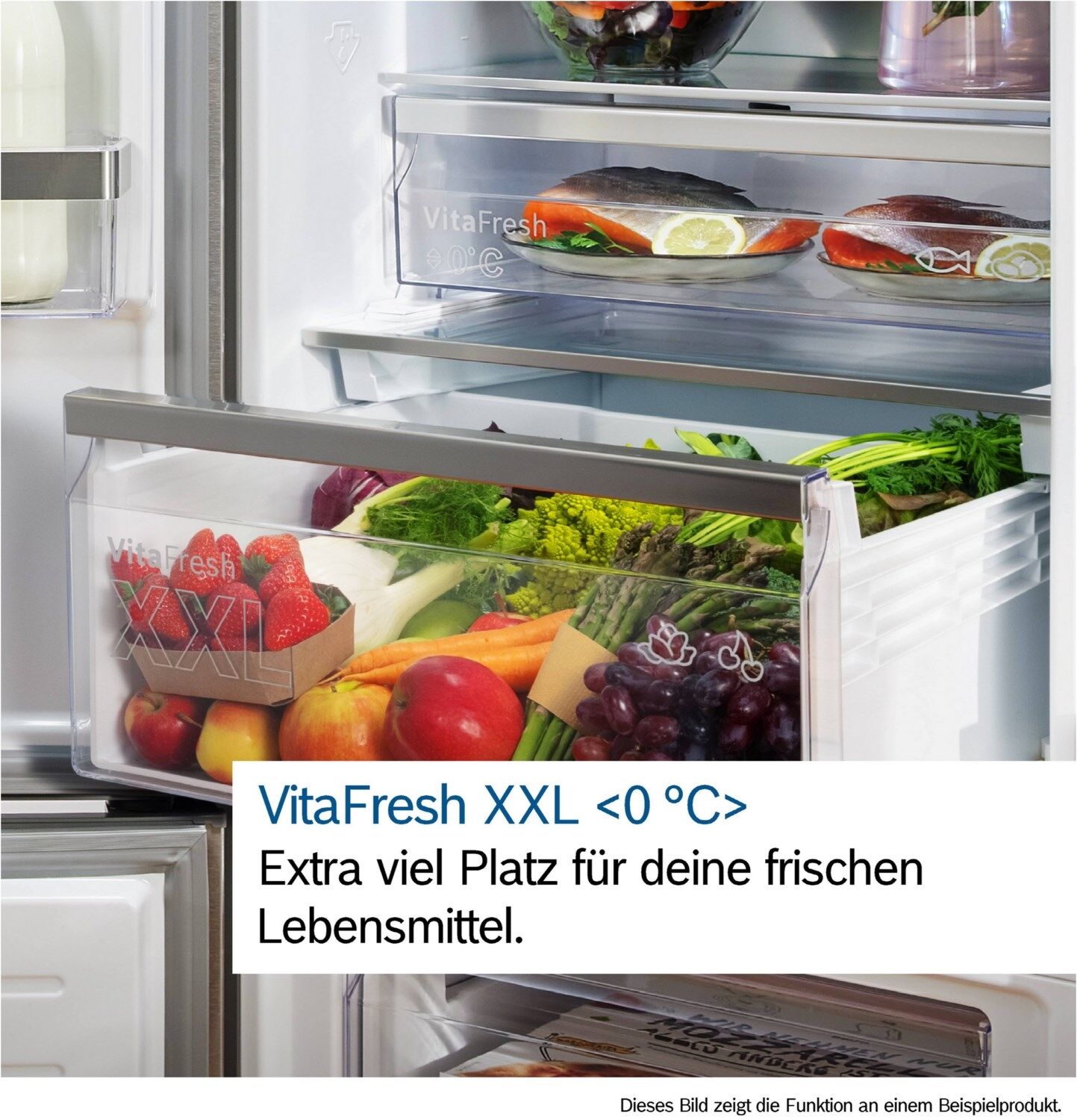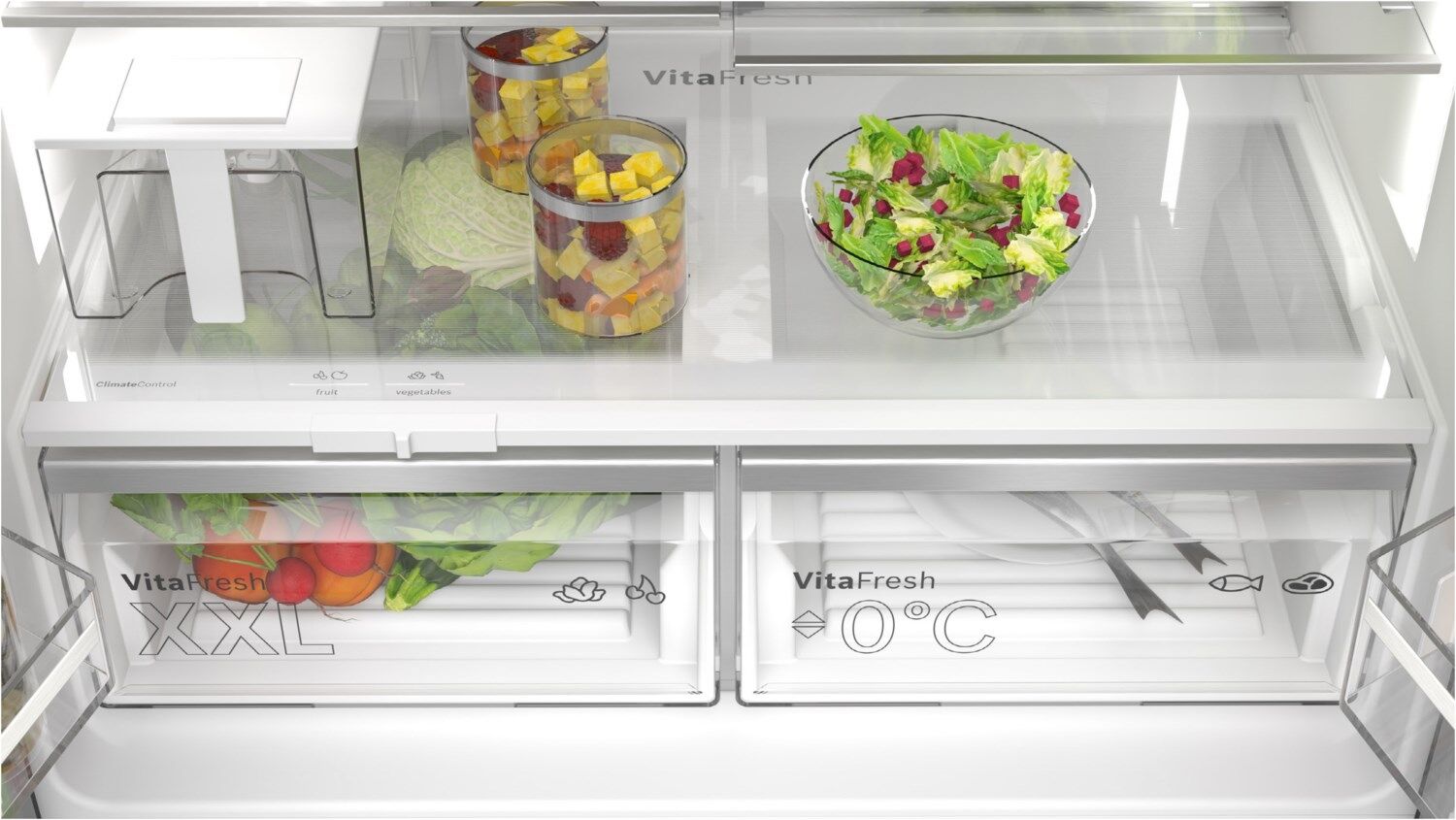 - VitaFresh XXL <0 °C>: hält Lebensmittel in extra großen, luft- und temperaturkontrollierten Schubladen länger frisch