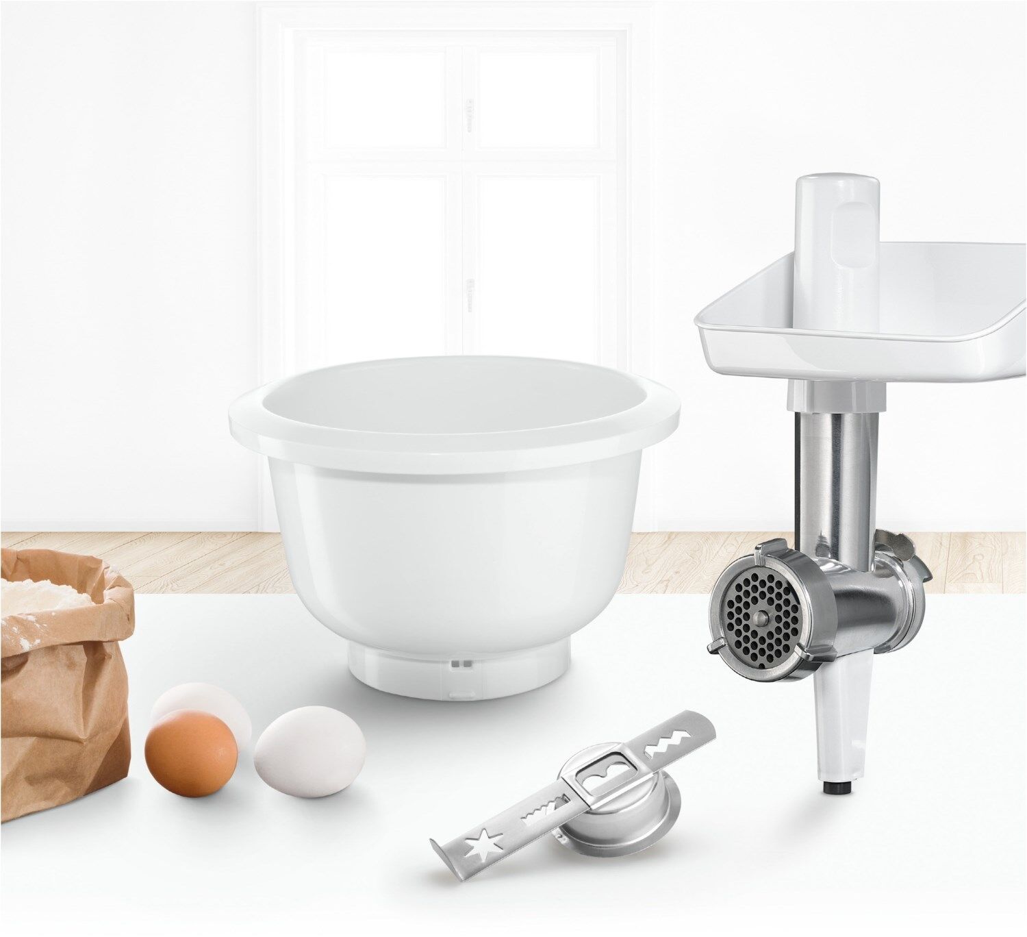 • Mit dem praktischen Vorsatz für den Fleischwolf, der im