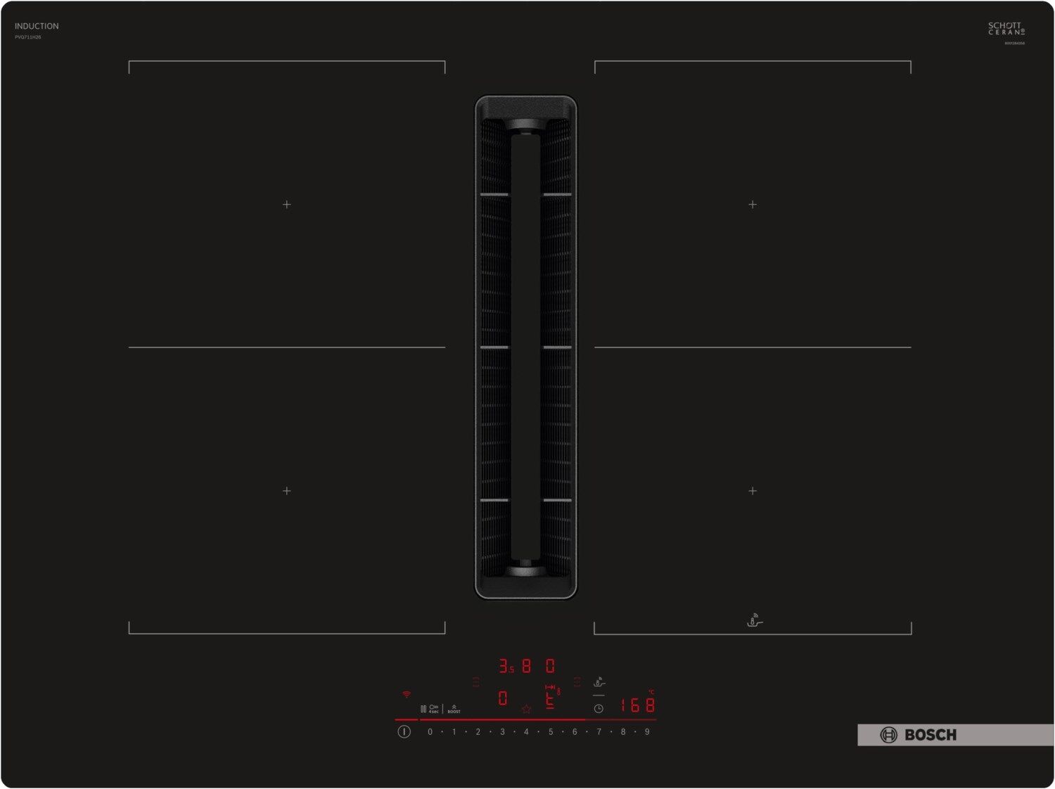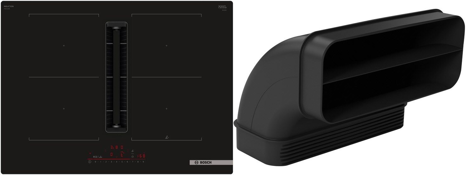- Induktionskochfeld mit vollintegriertem, leistungsstarkem Downdraft- Abzugsmodul.