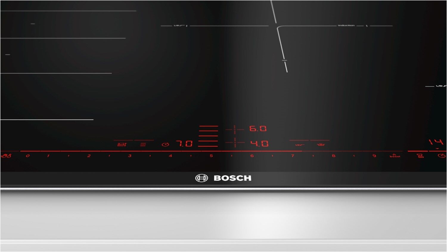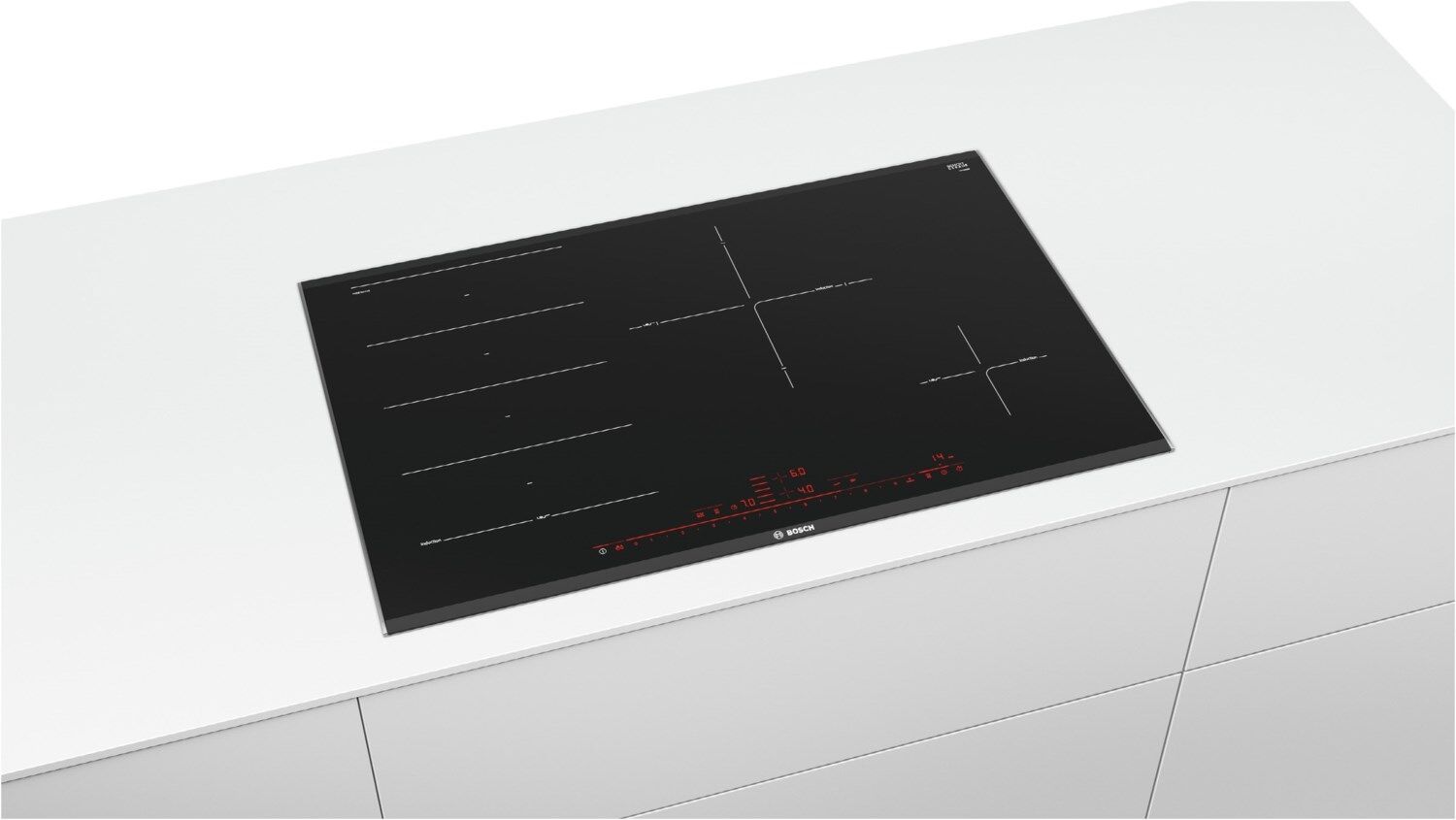 - FlexInductions-Zone Flexibles Zusammenschalten von Kochzonen zu einer durchgehenden Fläche für kleine Töpfe bis hin zu großem Sonderzubehör.