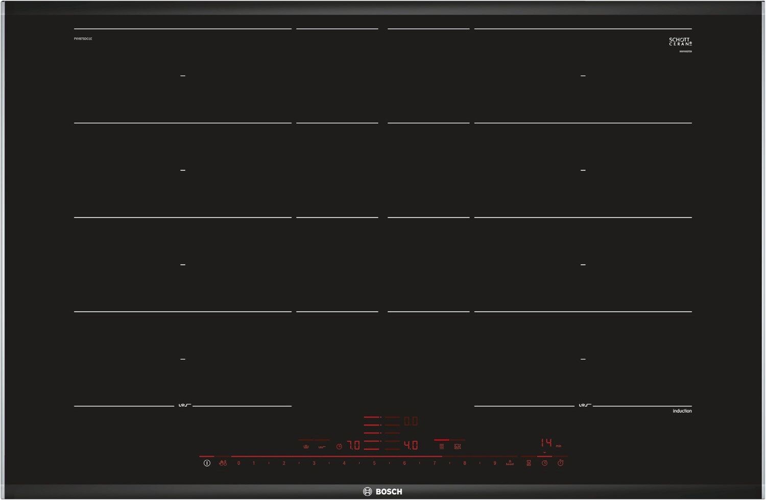 - Erweiterte FlexInductions-Zone noch mehr Flexibilität durch Zusammenschalten der Kochzonen zu einer durchgehenden Fläche, die bei größeren Töpfen noch erweitert werden können.