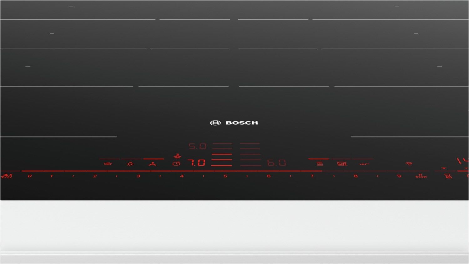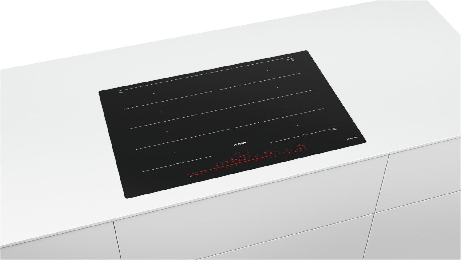 - Erweiterte FlexInductions-Zone: noch mehr Flexibilität durch Zusammenschalten der Kochzonen zu einer durchgehenden Fläche, die bei größeren Töpfen noch erweitert werden können.