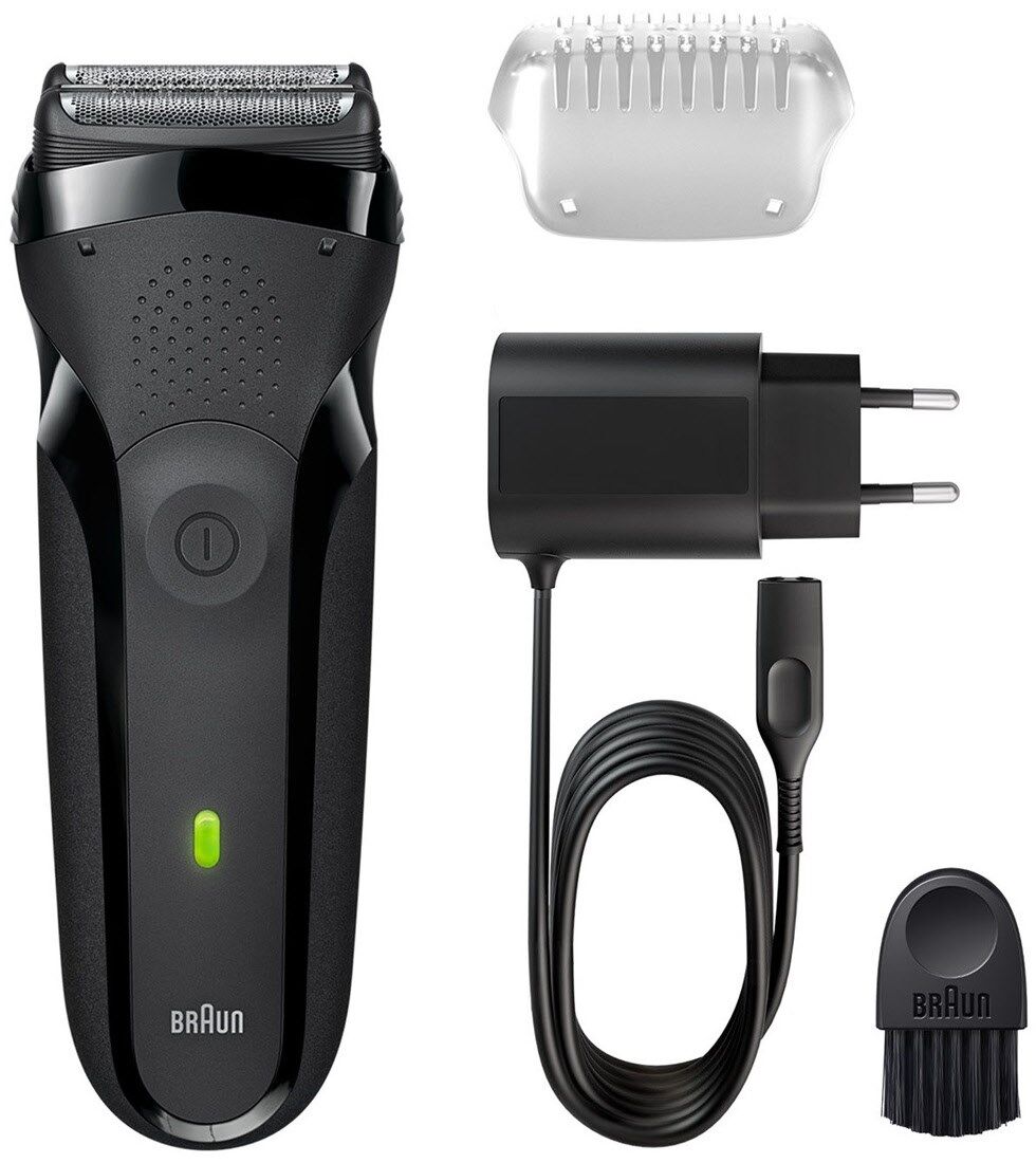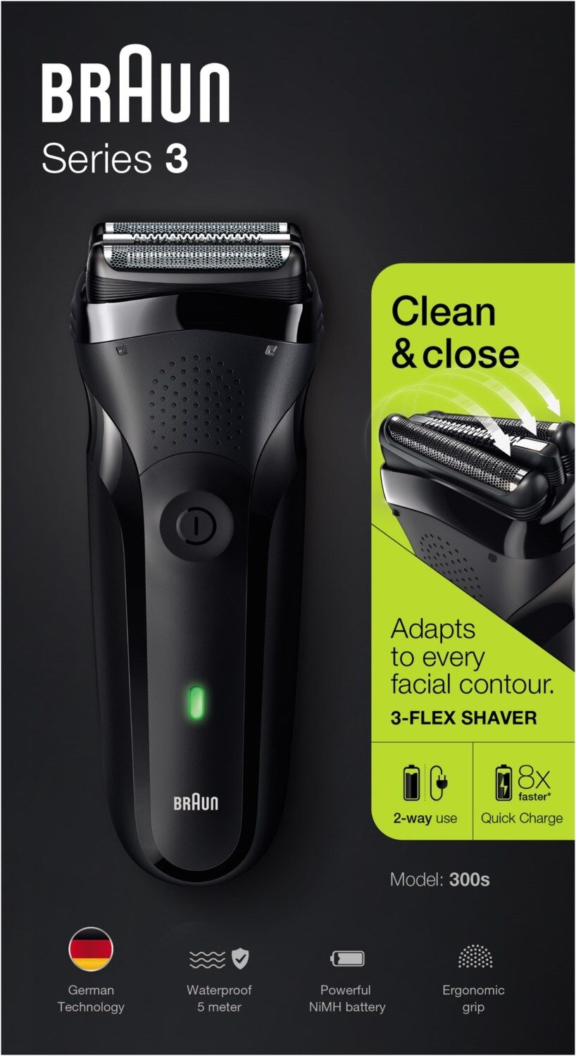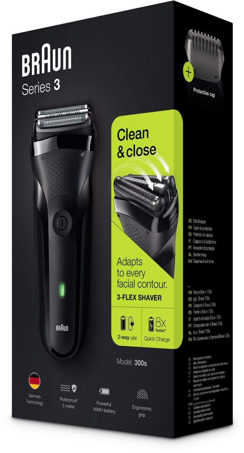 Der wiederaufladbare elektrische Folienrasierer Series 3 von Braun ist hart zum Bart und sanft zur Haut. Die 3 drucksensiblen Scherelemente passen sich jeder Gesichtskontur perfekt an und rasieren intuitiv gerade Linien. Der Braun Series 3 Rasierer wird von Braun in Deutschland entwickelt und hergestellt und zeichnet sich durch eine lange Haltbarkeit aus.