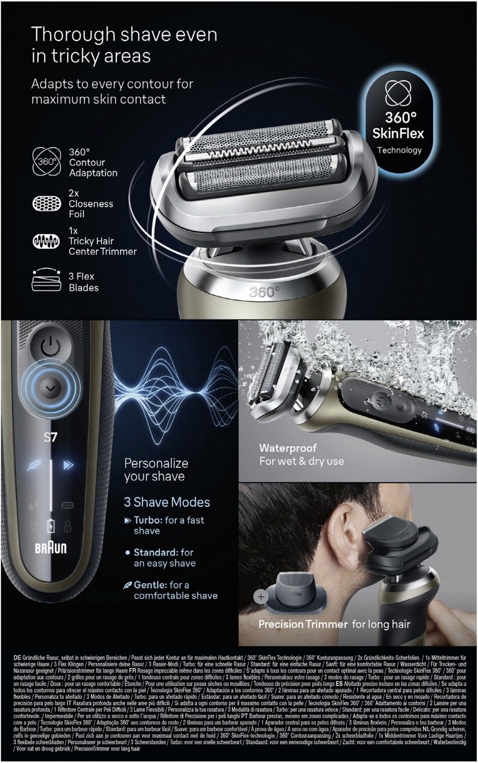 - Gründlicher und schneller: Braun's Series 7 Elektrorasierer bietet eine gründlichere und schnellere Rasur als je zuvor und ist dabei sanft zur Haut (vs. S7 Vorgängermodell)
