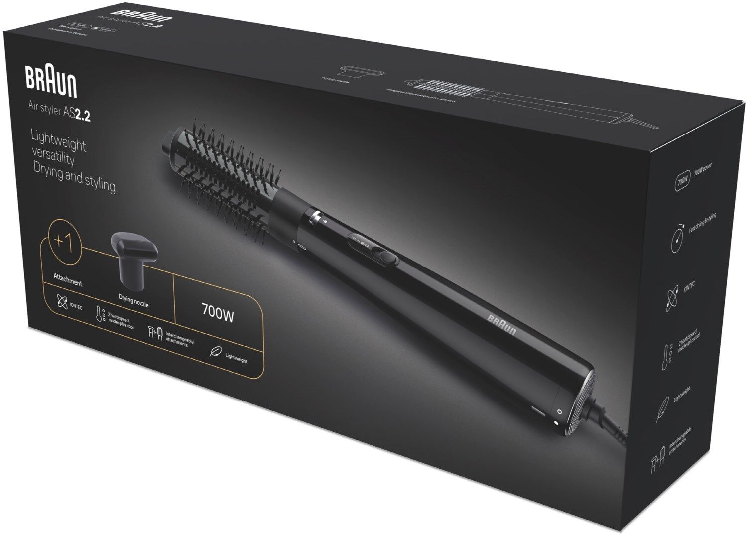 Der Braun Airstyler AS2.2 ist präzise entwickelt für einfaches, schnelles und zuverlässiges Trocknen und Stylen in einem Schritt.