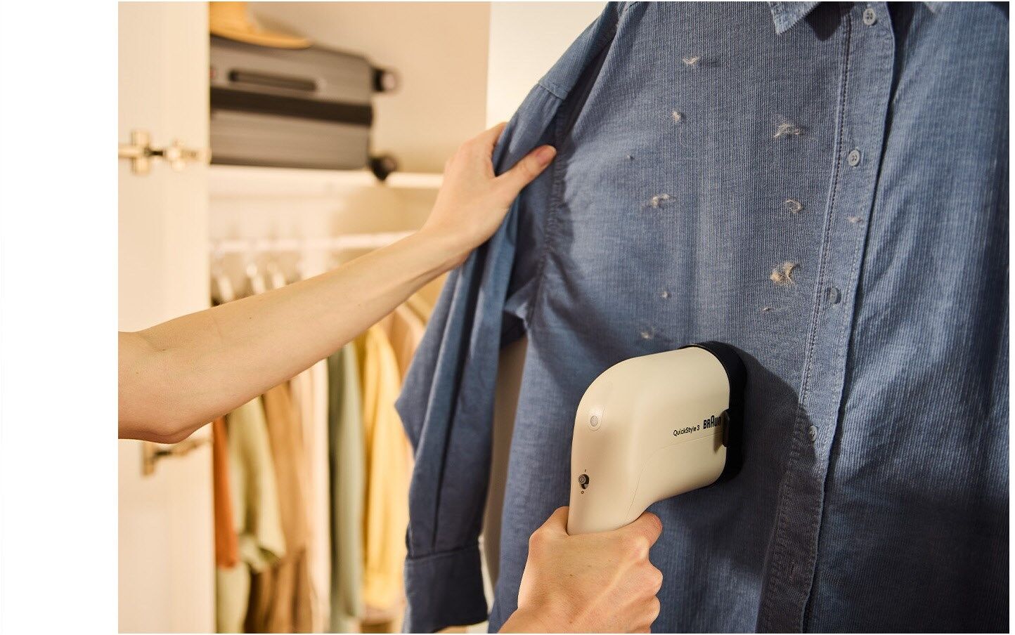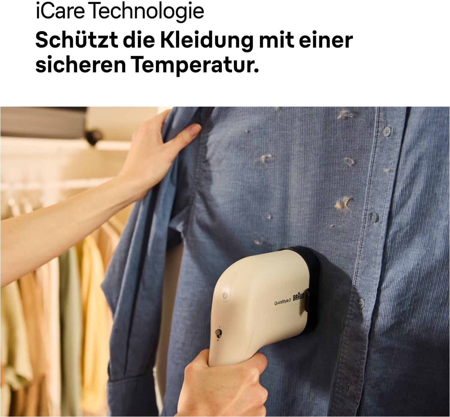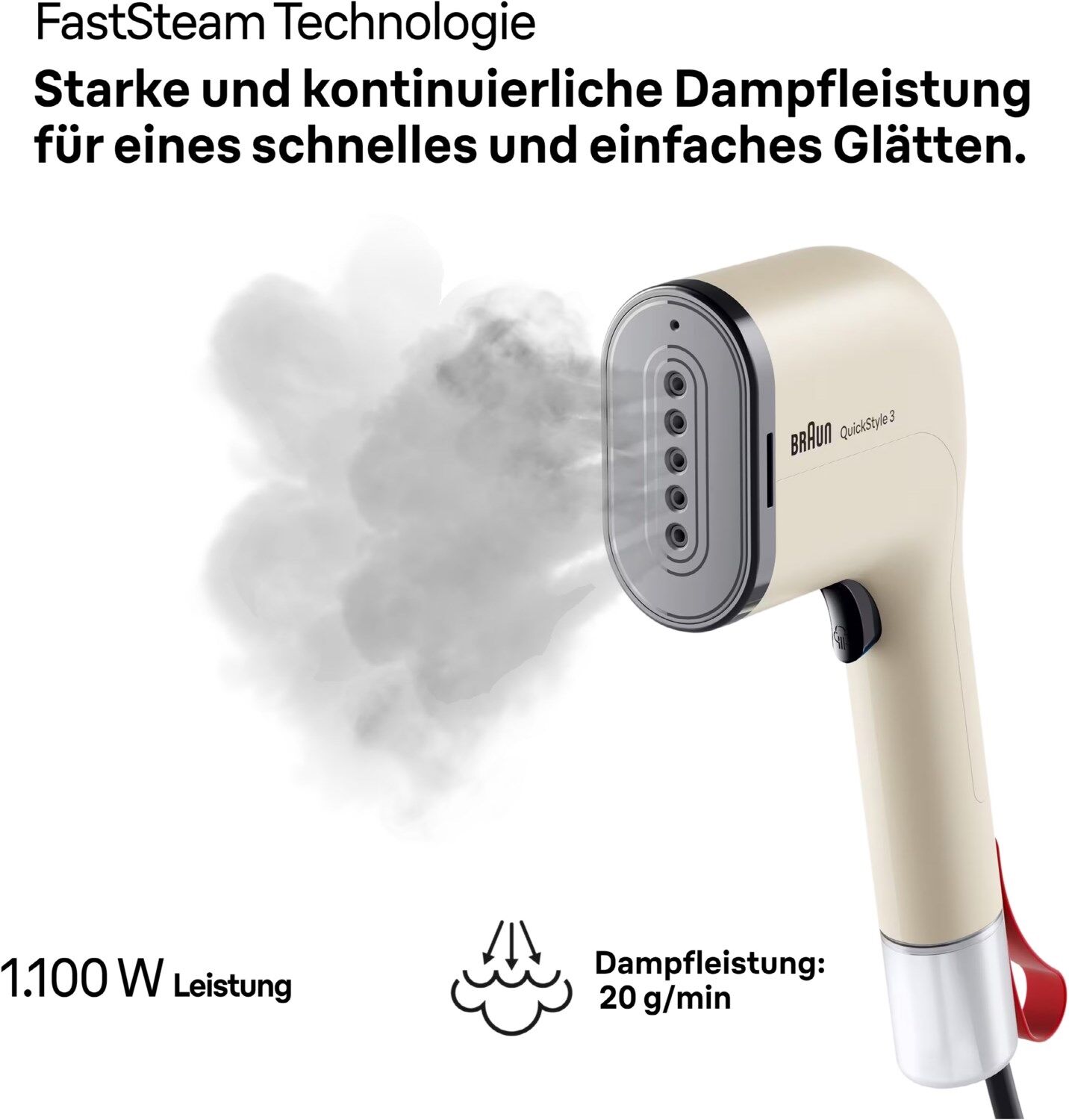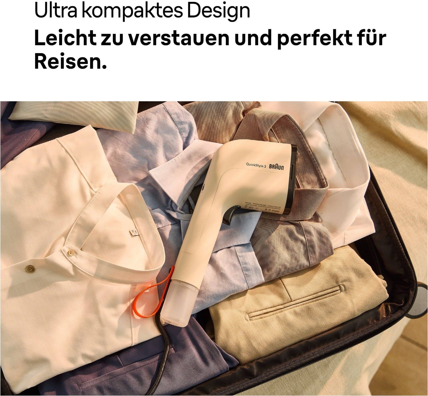Mit seinem ultra kompakte Design ist der QuickStyle 3 Dampfglätter von Braun elegant und platzsparend.