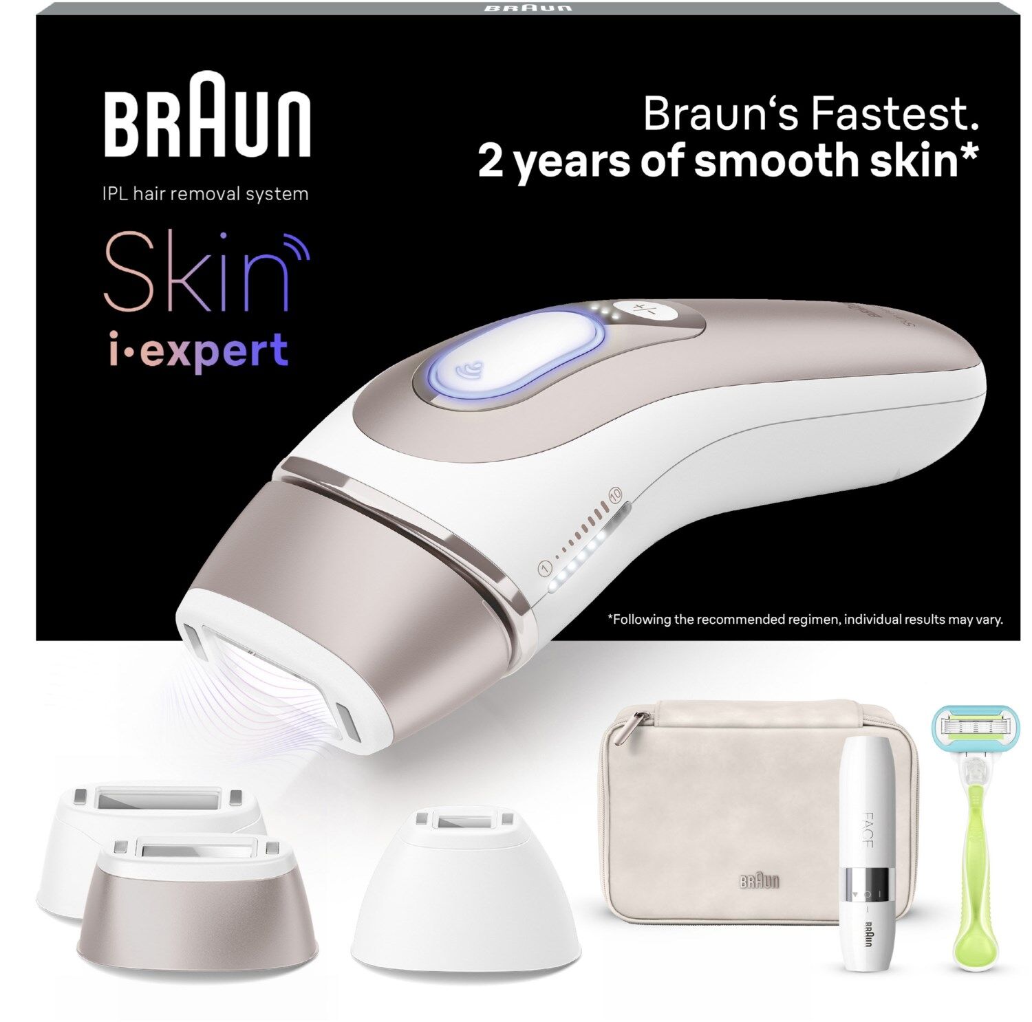 - Inklusive: Beauty Pouch, 1 Präzisionsaufsatz, 1 breiter Aufsatz, Braun Mini-Haarentferner, Gillette Venus Rasierer