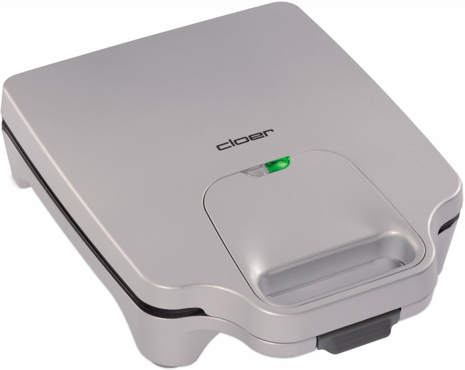 Kontrolllampen Fest eingestellter Bräunungsgrad Fettarmes Backen durch Antihaftbeschichtung 2-stufige Griffverriegelung Rutschfeste Gummifüße Silber lackiertes Kunststoffgehäuse 4 Sandwiches, je diagonal geteilt: Für American Toasts und XXL Füllung