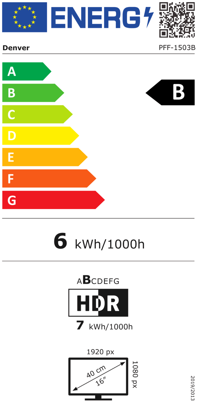 Energieeffizienzklasse (HDR-Wiedergabe)B