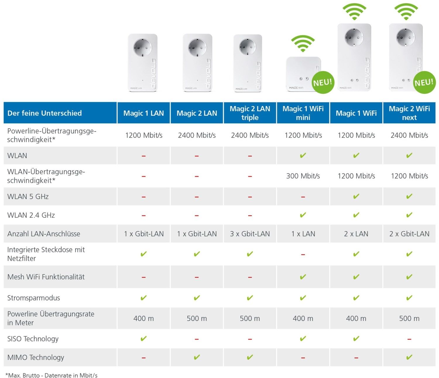 - Kompatibel mit allen Routern, devolo Magic-Adaptern und vom HomeGrid Forum zertifizierten Produkten