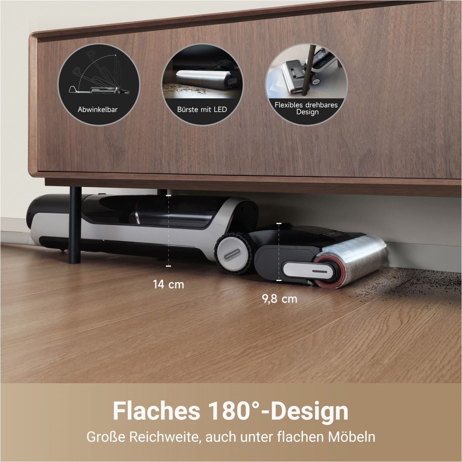 - Flexible und gründliche 180° Reinigung dank flachem Design
