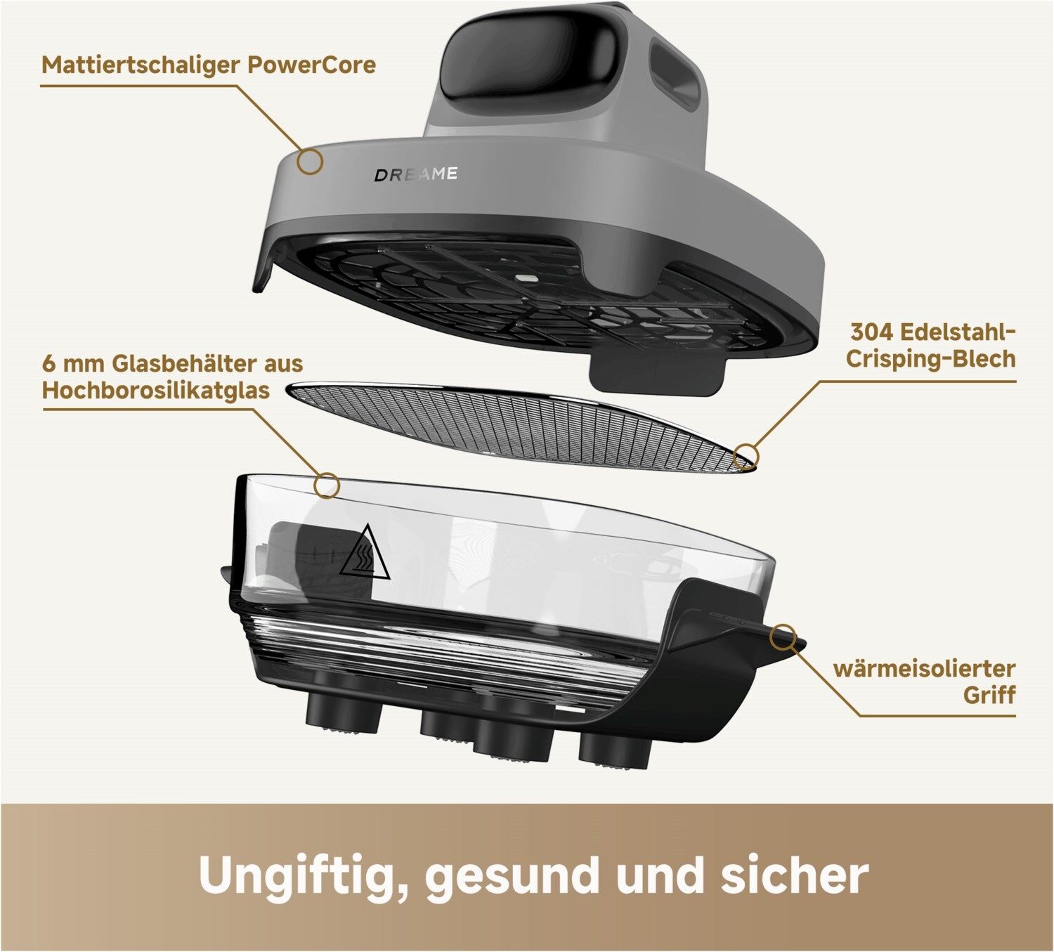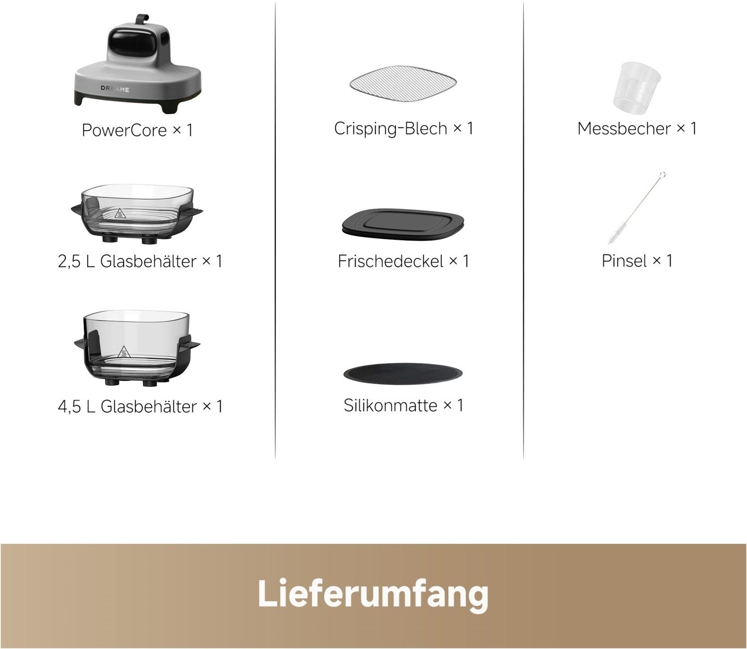 - Zwei Glasbehälter (2,5 L + 4,5 L): Für flexible Portionsgrößen und vielseitige Gerichte