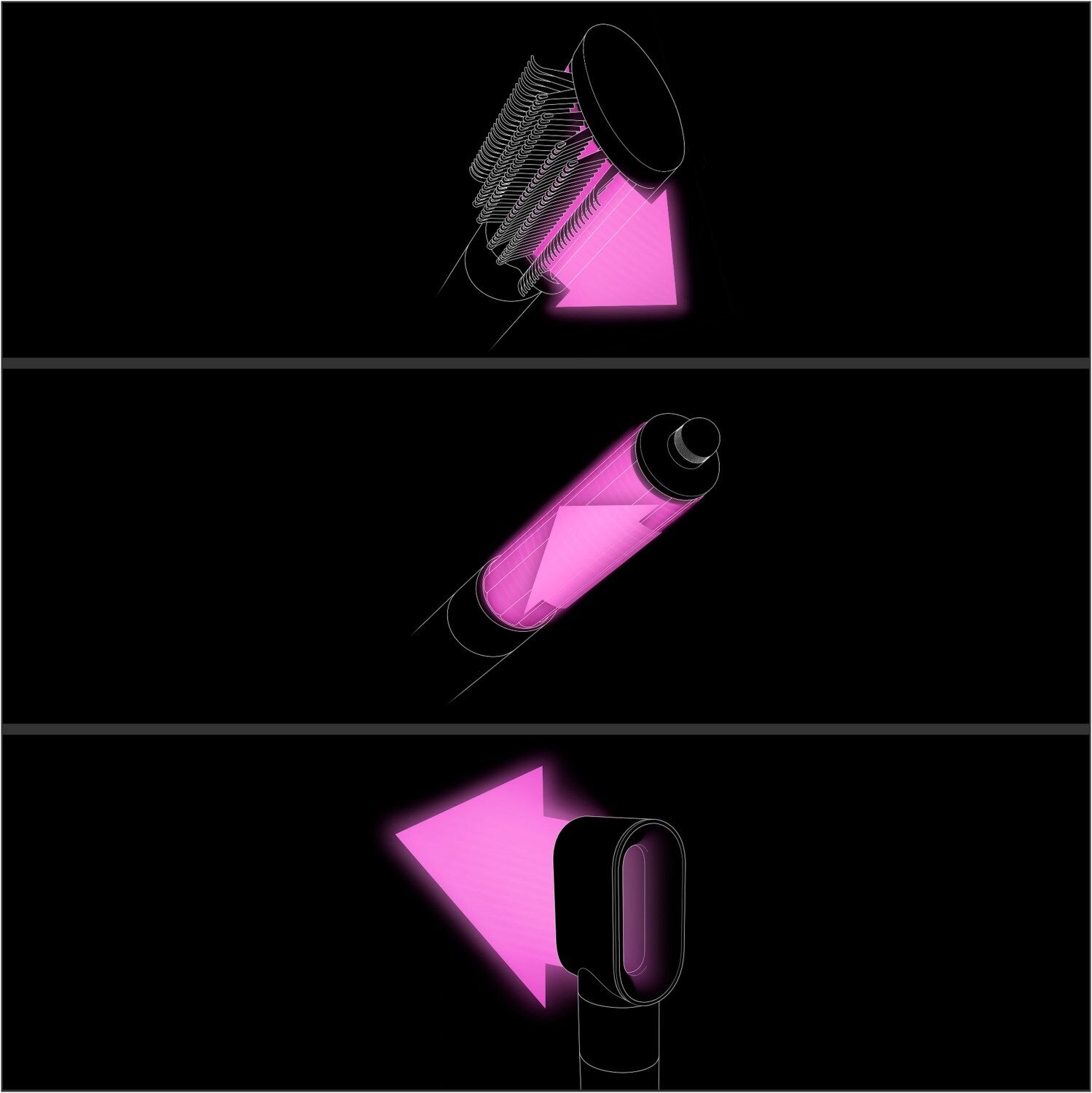 Mit einem digitalen Motor, der dank seiner Leistungsstärke den Coanda-Effekt erzeugt, und einer intelligenten Temperaturregulierung (misst die Temperatur bis zu 40-mal pro Sekunde) benötigt der Dyson AirwrapTM keine extreme Hitze zum Stylen. Durch die Kombination aus der Feuchtigkeit der Haare, einem starken Luftstrom und einer Temperatur, die immer unter 150 °C gehalten wird, kann er gleichzeitig stylen und trocknen.