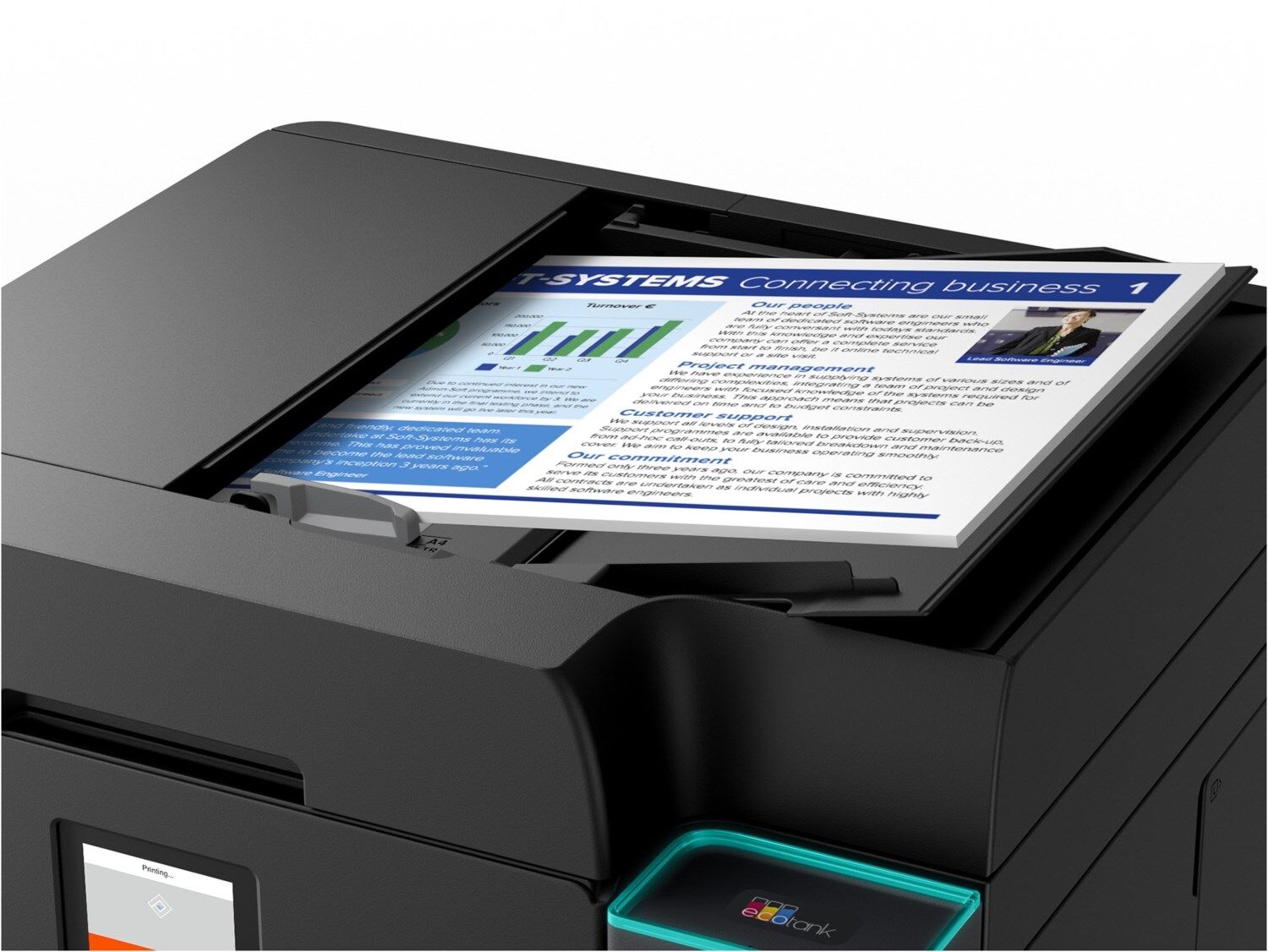 EcoTank ermöglicht komfortables Drucken zu Hause und im Büro. Die großvolumigen Tintentanks ermöglichen ein unkompliziertes Nachfüllen. Da die Tintenflaschen über ein Schlüssel-Schloss-Prinzip funktionieren, kann nur die jeweils richtige Tinte eingefüllt werden. Dank der Tintenstandsanzeige auf der Vorderseite können Sie leicht erkennen, wann ein Nachfüllen fällig ist, und dank der eleganten blauen Leuchte auf der Abdeckung des Tintentanks können Sie den Status Ihres Druckers auf einen Blick erkennen.