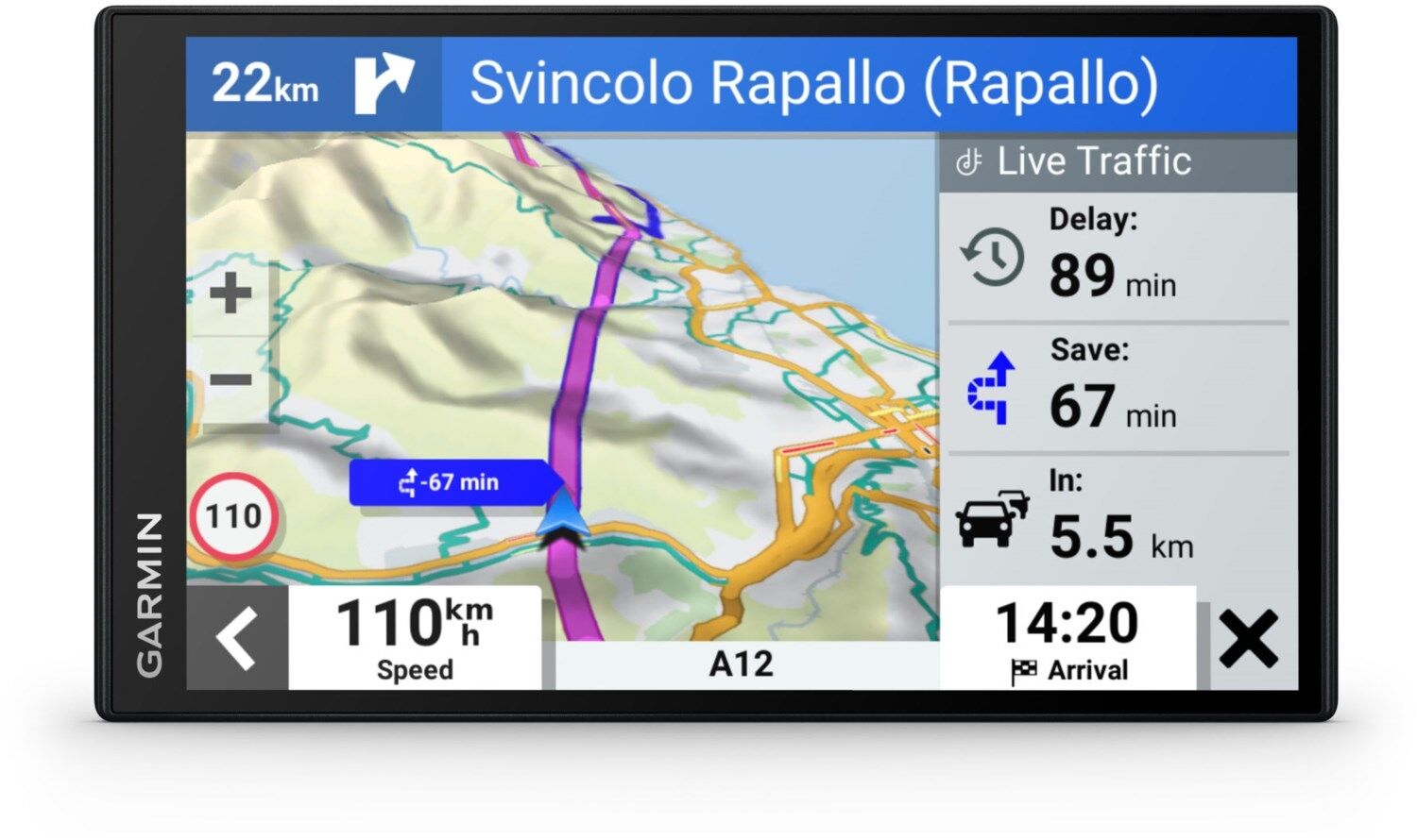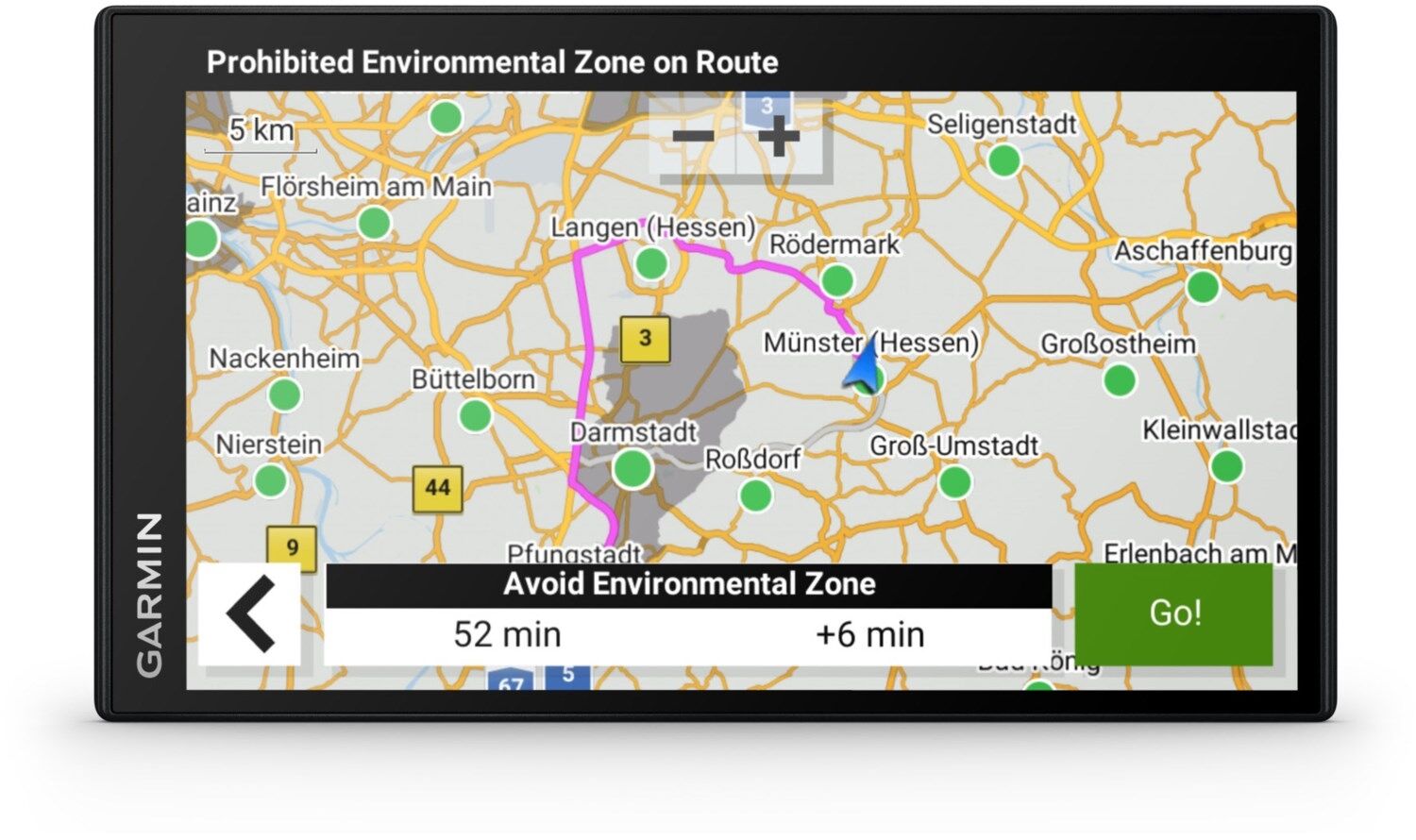 Nutze die Garmin Sprachassistenz für eine besonders einfache Suche und um dich zu jedem Ziel sicher navigieren zu lassen. Deine Hände bleiben bei der Nutzung immer am Lenkrad. Das bestens ablesbare HD-Display zeiget dir die Route auf der updatefähigen Europakarte inklusive Umweltzonen an, sowie Hinweise vor Abschnitten, die deine volle Aufmerksamkeit benötigen.
