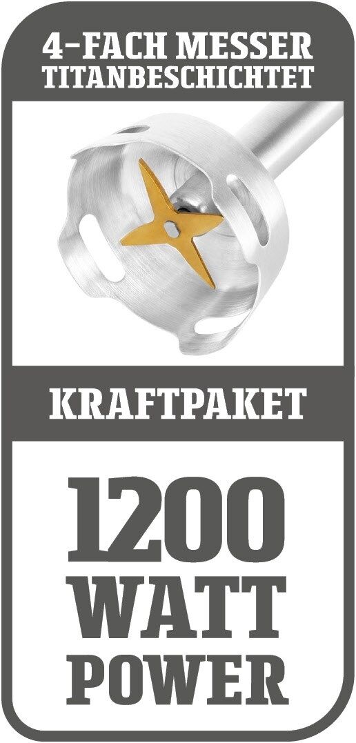 - 21 cm Mixstab mit 4-fach Edelstahlmesser (titanbeschichtet)