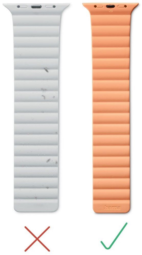 - Nicht klebrig: Das spezielle Finish verhindert, dass Krümel, Staub oder Flusen am Silikonarmband hängen bleiben