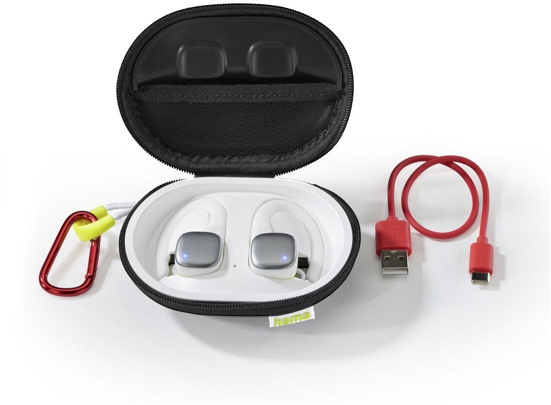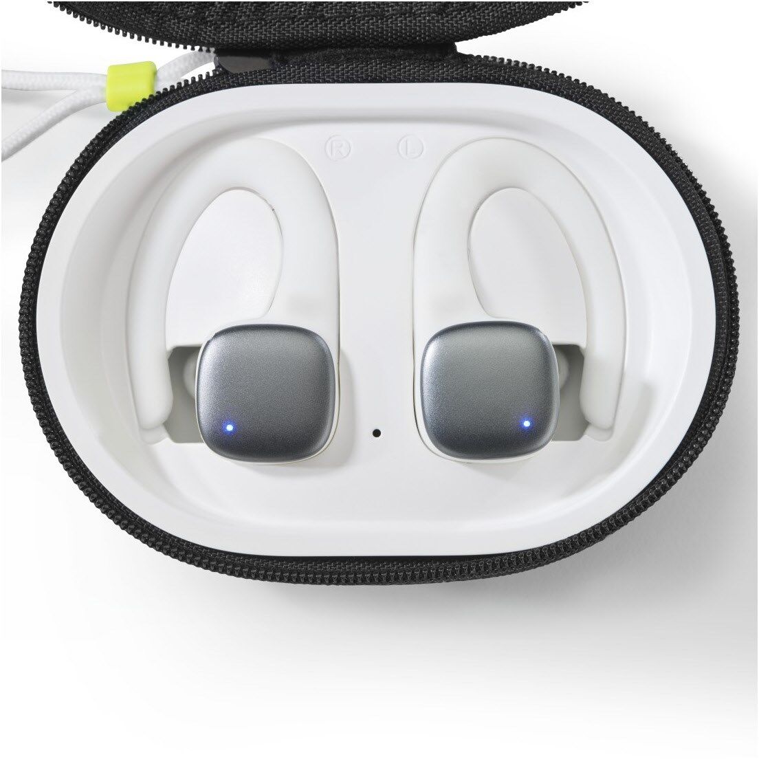 - Mit der Ladebox können die Bluetooth-Sport-Kopfhörer bis zu 4x unterwegs nachgeladen werden – dank integriertem Akku ohne externe Stromversorgung