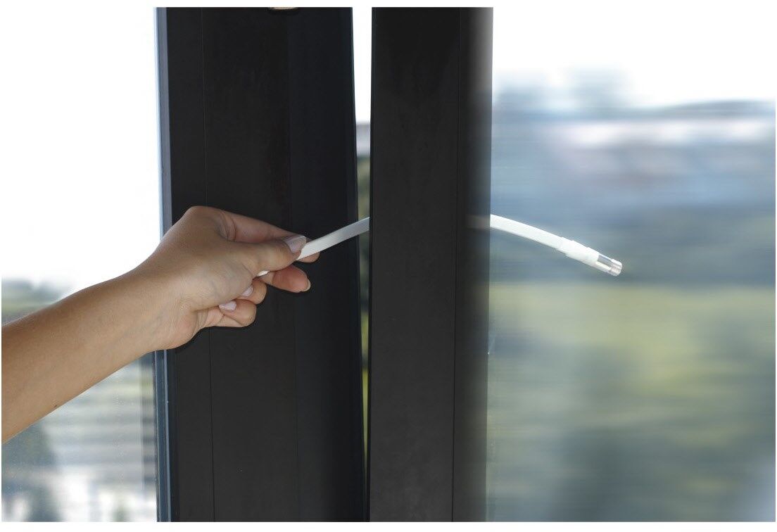 - sehr belastbares, flaches Kabel, um ohne Bohrungen Fenster und Türen zu überbrücken