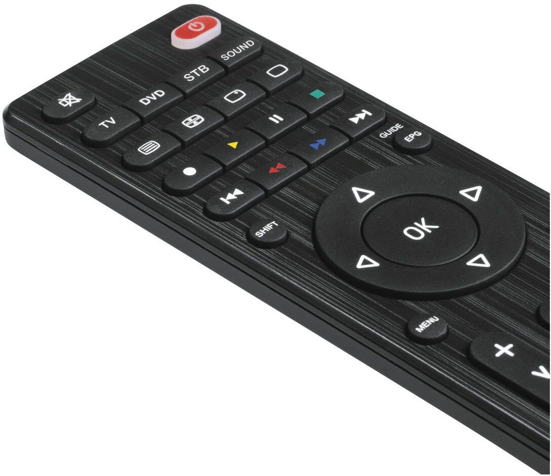 - Eine für alle: Mit der Universal-Fernbedienung steuern Sie TV, DVD-Player, Set-Top-Boxen und Videorekorder (bis zu vier Geräte) und machen so mit dem Fernbedienungs-Chaos Schluss