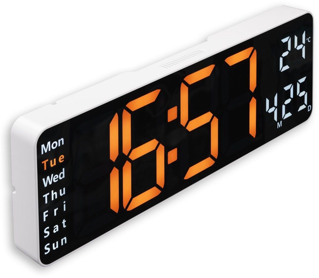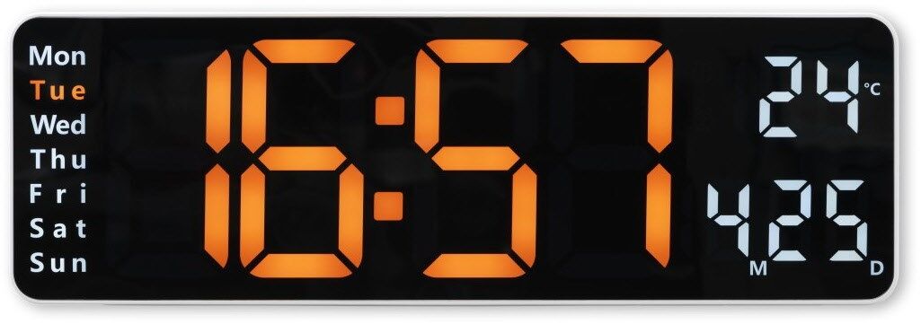 - Das extragroße und übersichtliche LED-Display der digitalen Wanduhr zeigt Uhrzeit, Wochentag und Temperatur auf einen Blick