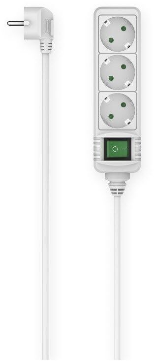 Steckdoseneinsätze um 45° gedreht 3 Schutzkontakt-Steckdosen Kabellänge: 3 m Mehrfachsteckdose zum Anschluss von bis zu drei elektrischen Geräten Mit erhöhtem Berührungsschutz, um unbeabsichtigten Kontakt zu vermeiden Zweipoliger, grün beleuchteter Ein-/Ausschalter, ideal um nicht benötigte und Stand-by-Geräte auszuschalten