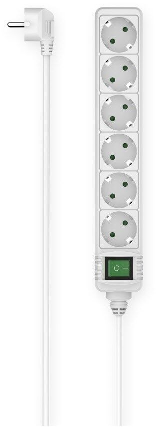 Steckdoseneinsätze um 45° gedreht 6 Schutzkontakt-Steckdosen Mehrfachsteckdose zum Anschluss von bis zu sechs elektrischen Geräten Mit erhöhtem Berührungsschutz, um unbeabsichtigten Kontakt zu vermeiden Zweipoliger, grün beleuchteter Ein-/Ausschalter, ideal um nicht benötigte und Stand-by-Geräte auszuschalten