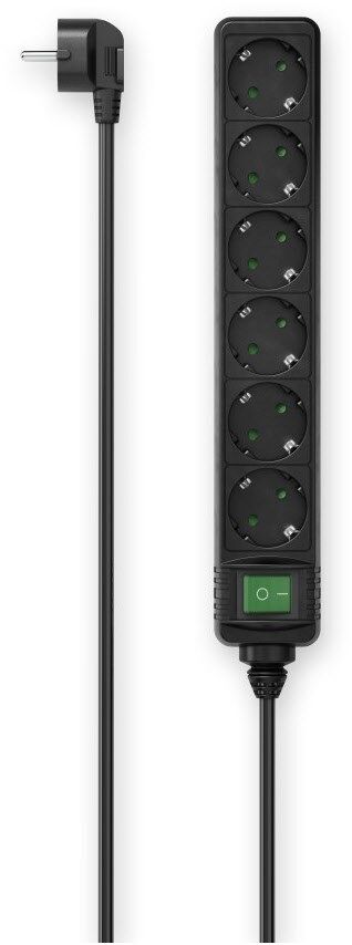 Steckdoseneinsätze um 45° gedreht 6 Schutzkontakt-Steckdosen Kabellänge: 1,4 m Mehrfachsteckdose zum Anschluss von bis zu sechs elektrischen Geräten Mit erhöhtem Berührungsschutz, um unbeabsichtigten Kontakt zu vermeiden Zweipoliger, grün beleuchteter Ein-/Ausschalter, ideal um nicht benötigte und Stand-by-Geräte auszuschalten