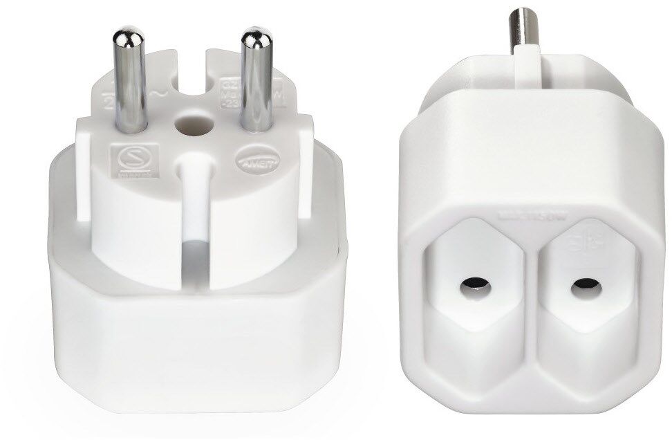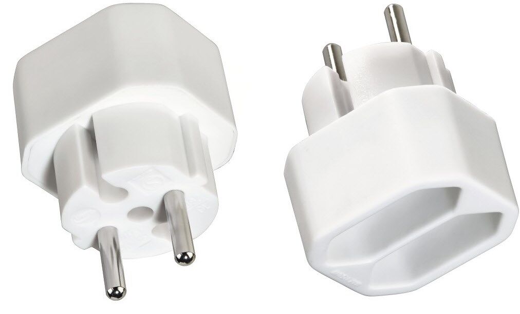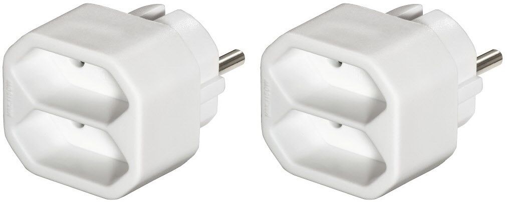 - Kompakter Adapter macht aus einer Schutzkontakt zwei Euro-Steckdosen