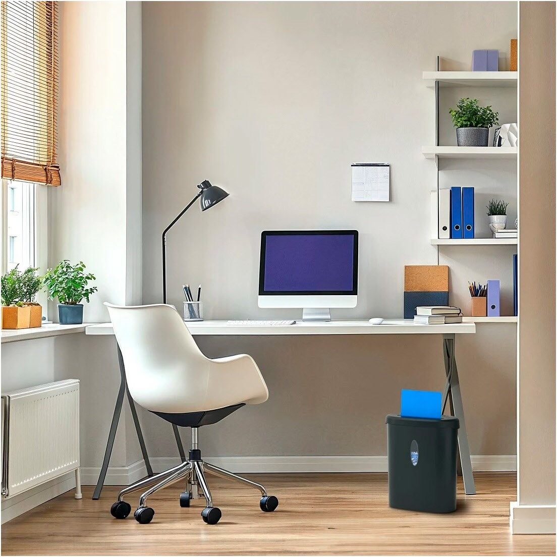 - Inklusive Papierkorb (21 Liter) mit Sichtfenster