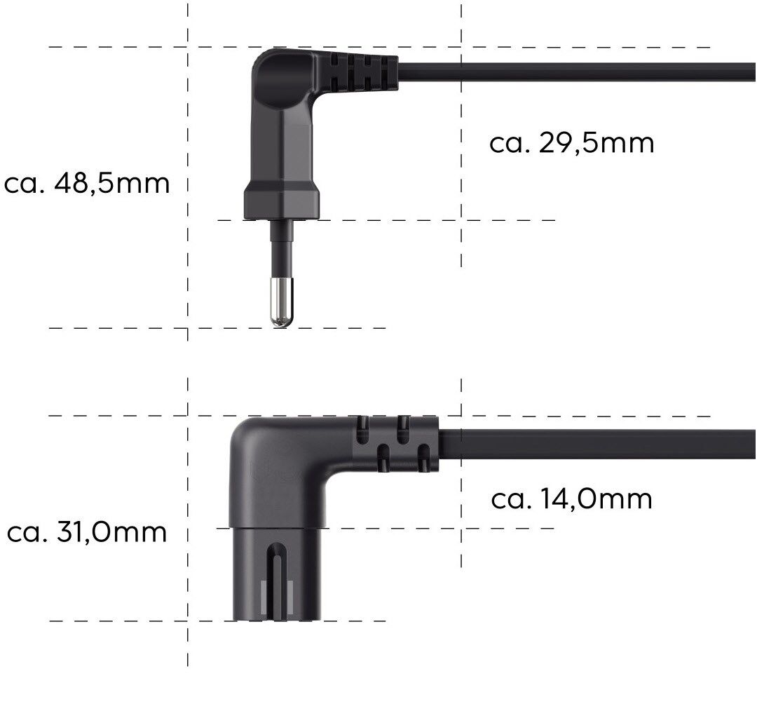 - Winkelstecker mit Anschlussbuchse nach Europa-Norm: Euro 8 auf Doppelnut (C7)