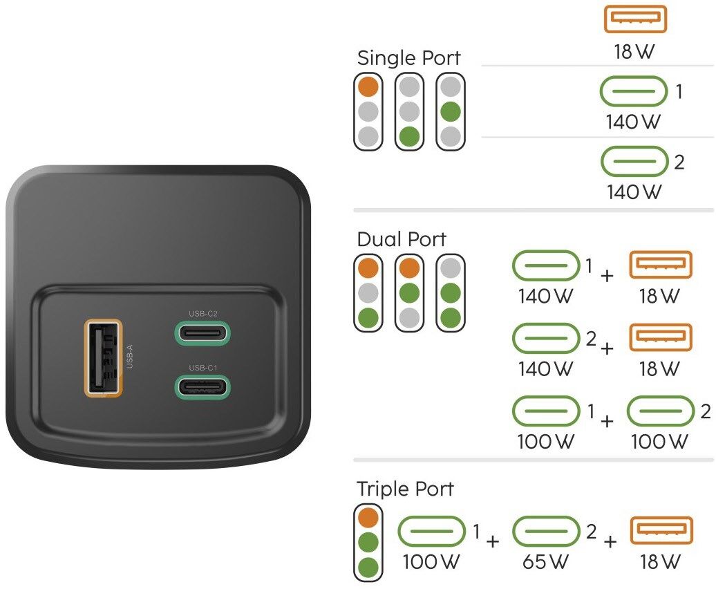 - Schnelllade-Technologien Power Delivery und Qualcomm® Quick Charge™ 3.0 garantieren extrem schnelles Aufladen, schneller als mit herkömmlichen Ladegeräten