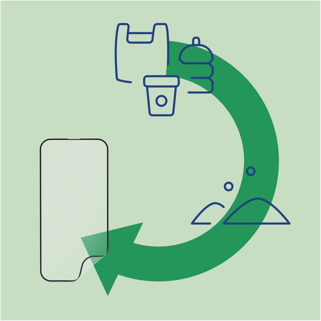 - PET-Material: Displayschutz und Trägerfolie bestehen zu 100% aus umweltfreundlichem rPET, bis zu 50% weniger Energie bei der Herstellung und nur 33% CO²-Ausstoß