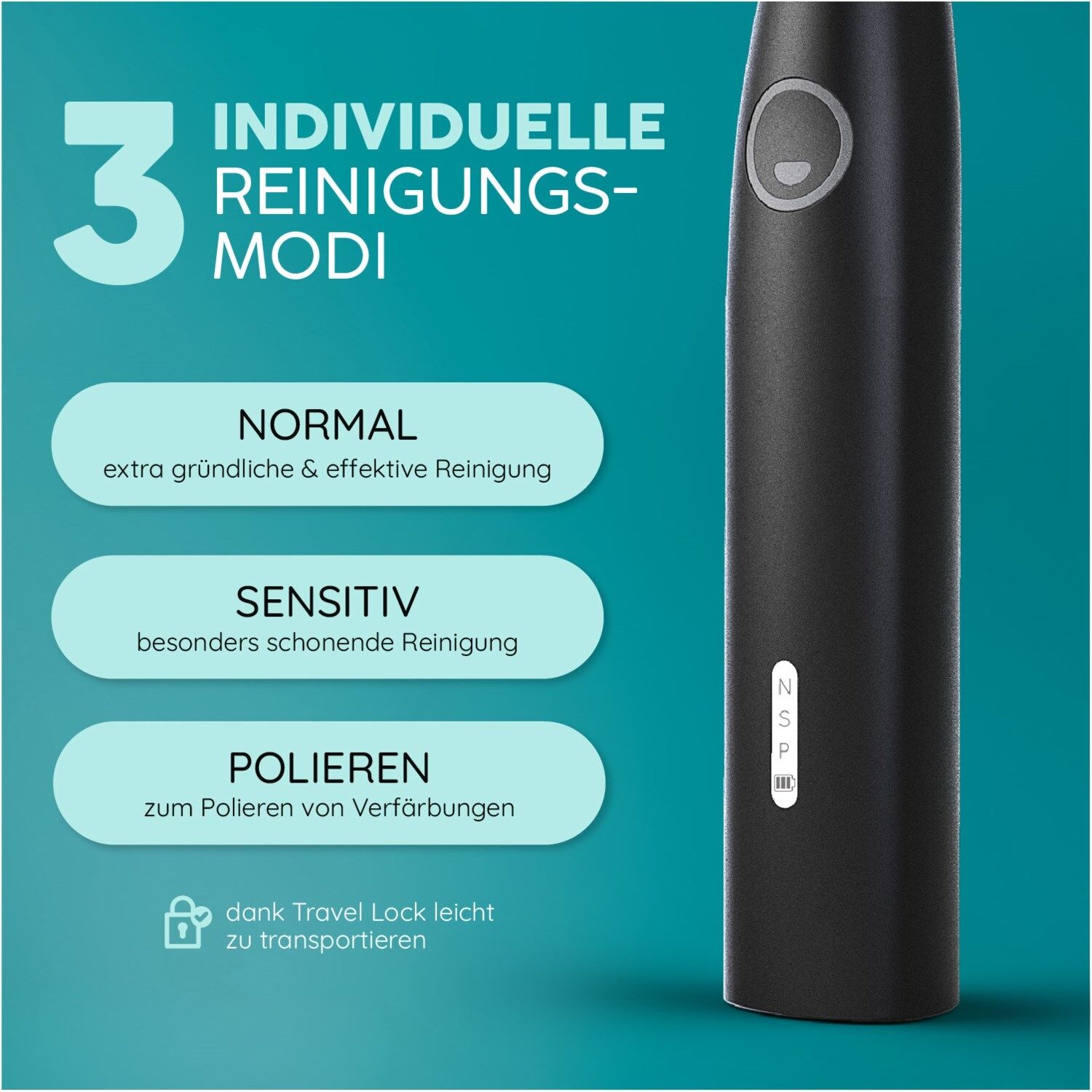 HOCHWERTIGE QUALITÄT: 40.000 Vibrationen pro Minute, individuelle Reinigungs-Modi (Normal, Sensitiv, Polieren) und 3-fach gedrehte Borsten sorgen für eine sanfte und effektive Reinigung deiner Zähne.