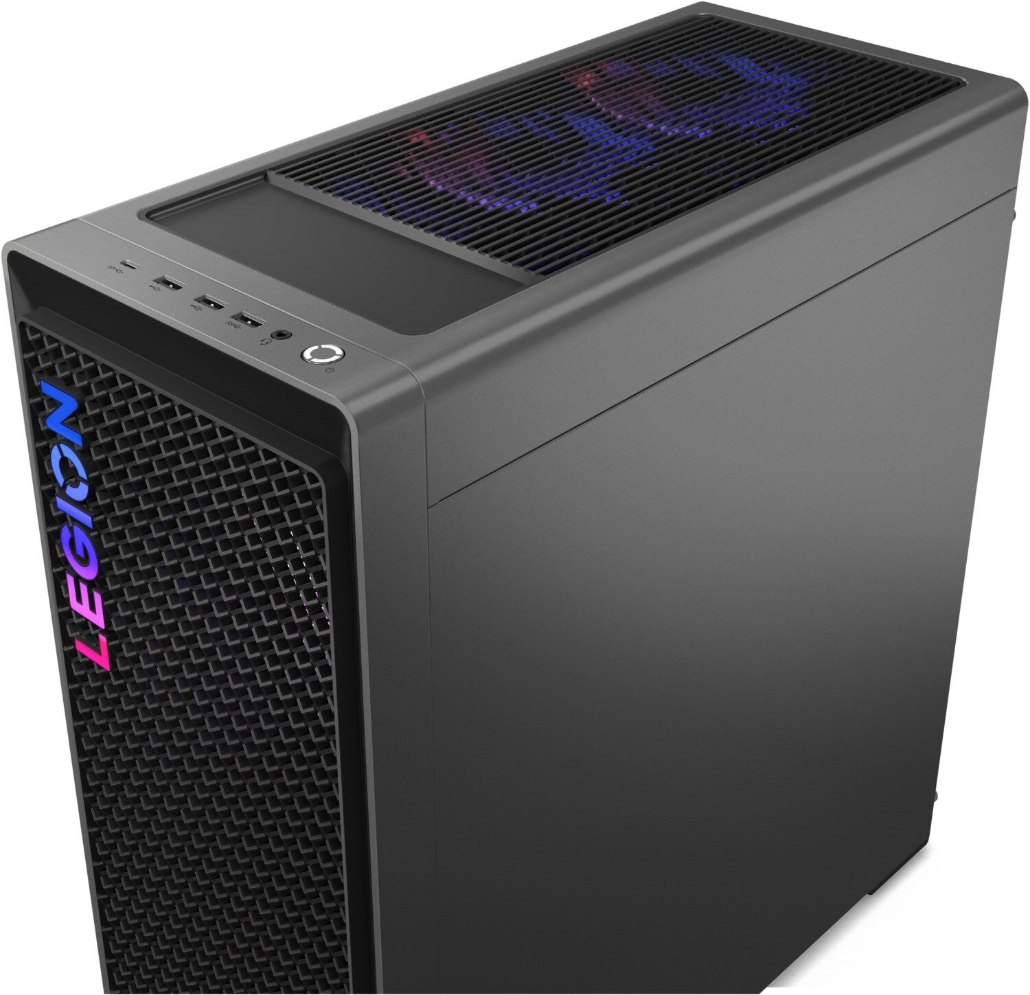 Der Legion Tower 7i verfügt über ein werkzeugloses, transparentes Seitenpanel für einfache Upgrades und Spitzenleistung ohne Ausfallzeiten. Das sturmgraue Gehäuse und die 3D-Mesh-Rahmen bieten hervorragenden Luftstrom und ein elegantes Design, während RGB-Beleuchtung und ARGB-Lüfter mit Legion Spectrum dynamische Anpassungsmöglichkeiten für Ästhetik auf sehr hohem Niveau sorgen.