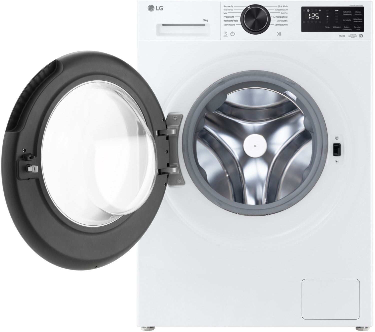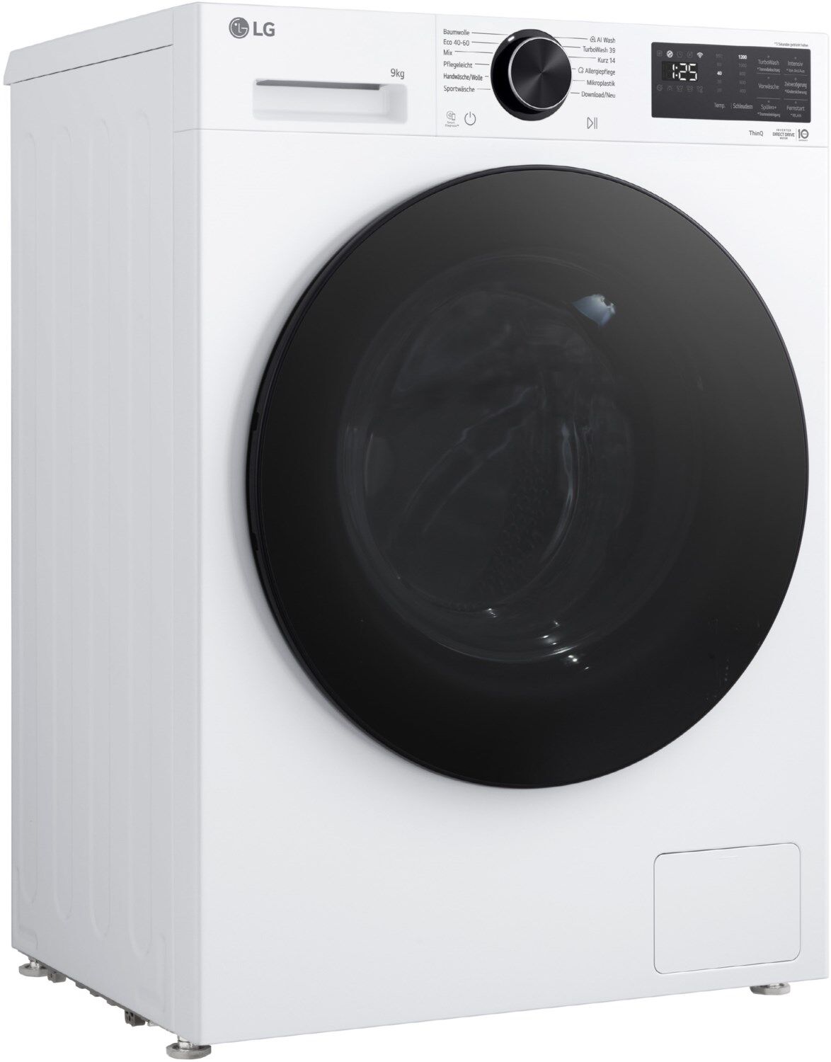 Bedient wird die Waschmaschine komfortabel über ein digitales Touchdisplay mit Restzeitanzeige und Startzeitvorwahl. Für noch mehr Flexibilität ist die F2X7SLIM9W mit der ThinQ® App kompatibel, sodass sich die Maschine bequem per Smartphone steuern lässt – egal ob Android oder iOS.