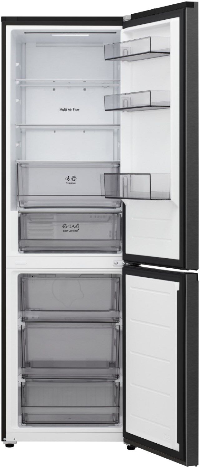 Die Ausstattung ist darauf ausgelegt, für maximale Frische und optimalen Stauraum zu sorgen. Der Smart Inverter Compressor® arbeitet leise, effizient und besonders zuverlässig; dank Total No Frost muss das Gerät nie wieder abgetaut werden. LinearCooling® und DoorCooling+® halten die Temperatur im Innenraum konstant, sodass Lebensmittel bis zu sieben Tage frisch bleiben und Getränke länger kühl sind. Neu ist der FRESHConverter+® mit echter 0° Zone: Über das digitale Display kann flexibel die optimale Temperatur für Fleisch (-3 °C), Fisch (0 °C) oder Käse (2 °C) gewählt werden. Darüber hinaus sorgen ein verstellbares Fach, ein Türkorb, ein flaches Wein- und Bierregal sowie ein ausziehbarer Boden für maximale Flexibilität beim Verstauen von Einkäufen.