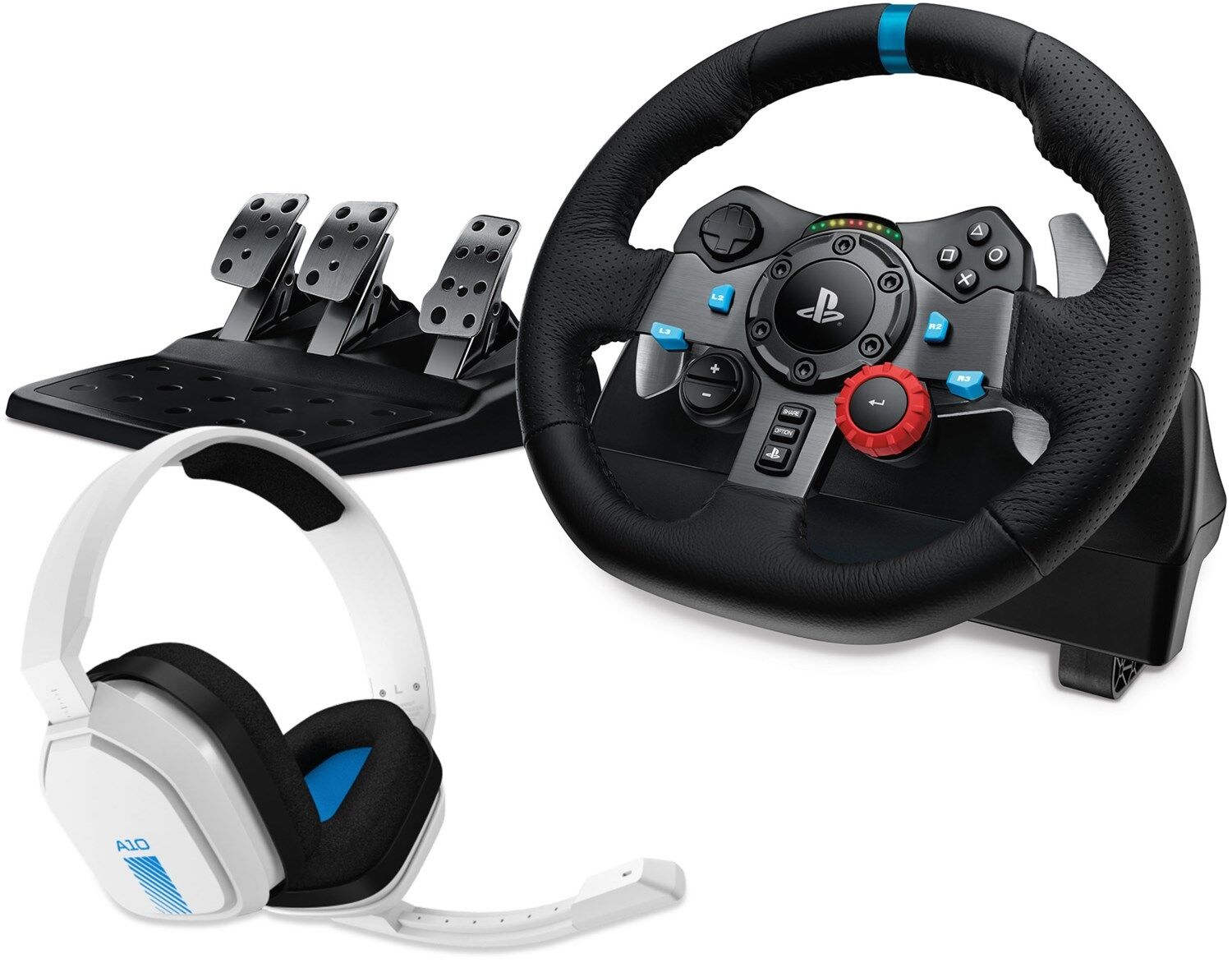 - DAS DUO FÜRS RUNDUM- ERLEBNIS: Authentisches Fahrerlebnis und klare Motorengeräusche mit G29 Rennlenkrad mit Pedalen und A10 Headset
