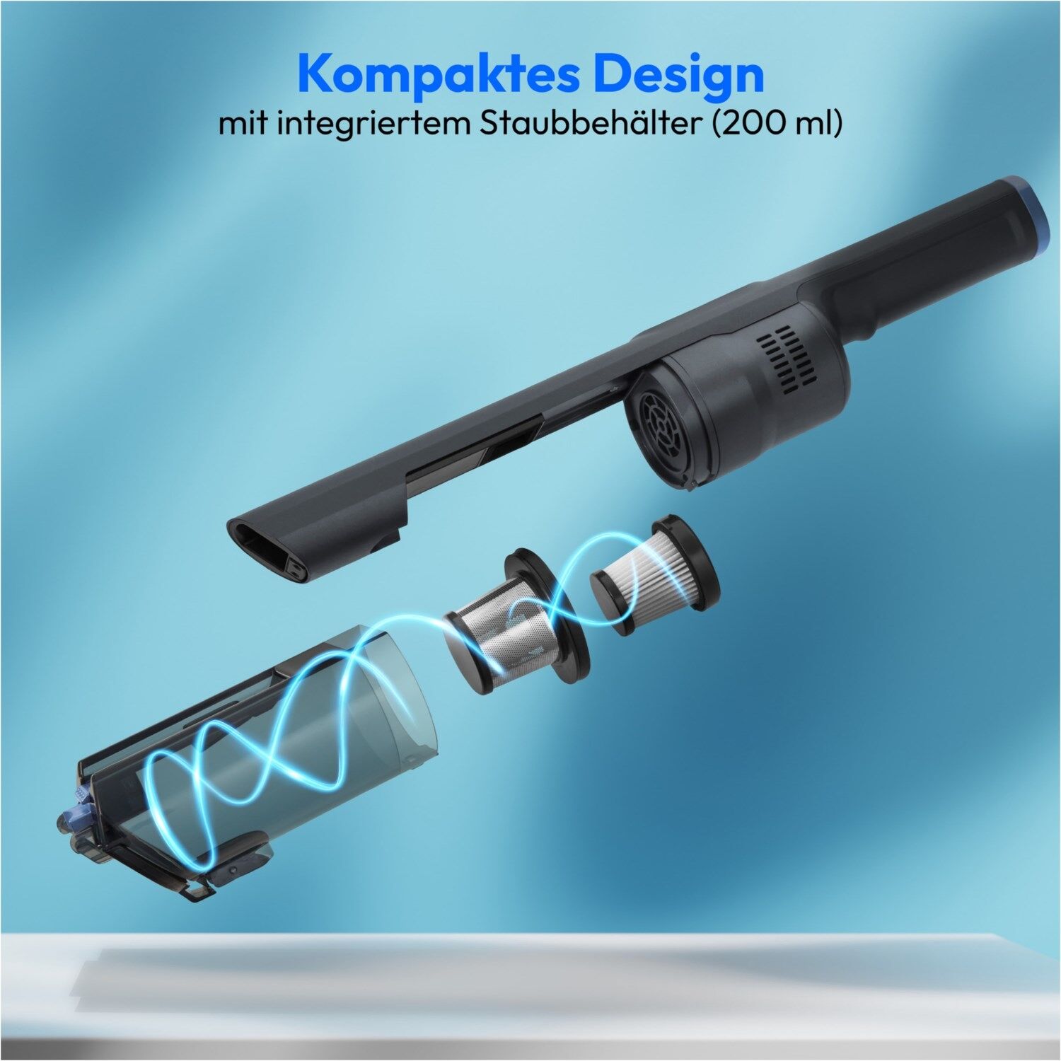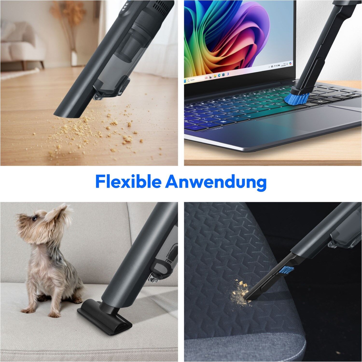 Der 200 ml Staubbehälter ist ideal für den Alltag, und mit den mitgelieferten Aufsätzen erreichst du auch Polster, Fugen und schwer zugängliche Ecken mühelos.