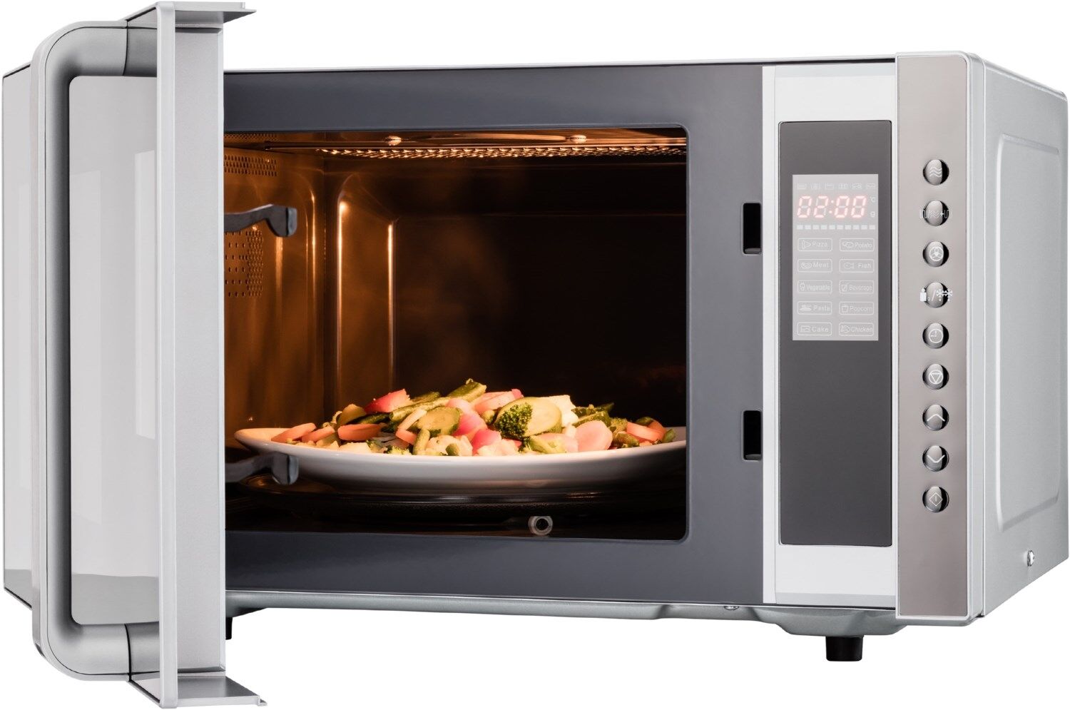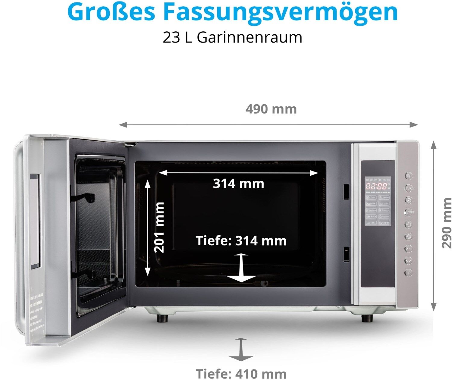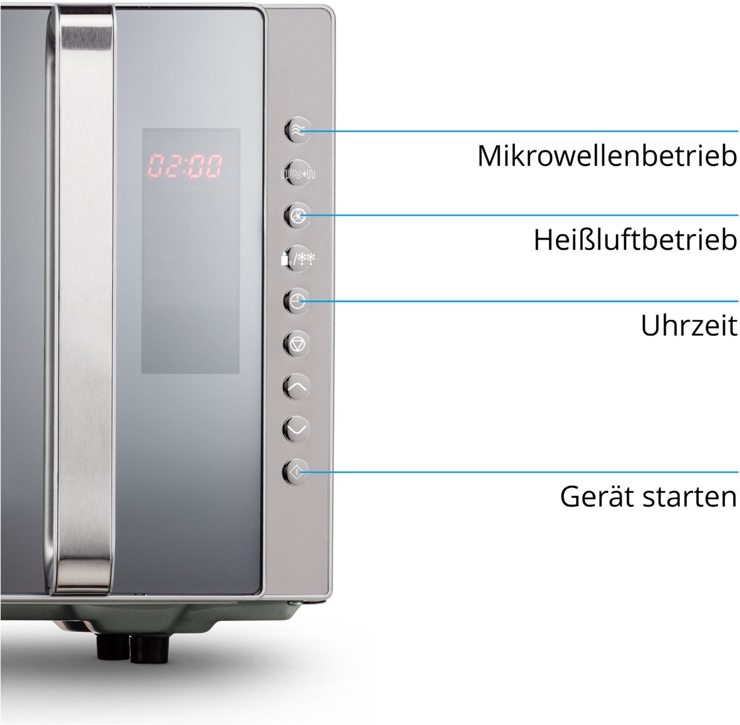 - 5 Mikrowellenstufen, 10 Heißluftstufen, 10 Automatik Programme, 4 Grillfunktionen, 4 Kombinationsmöglichkeiten, Auftaufunktion